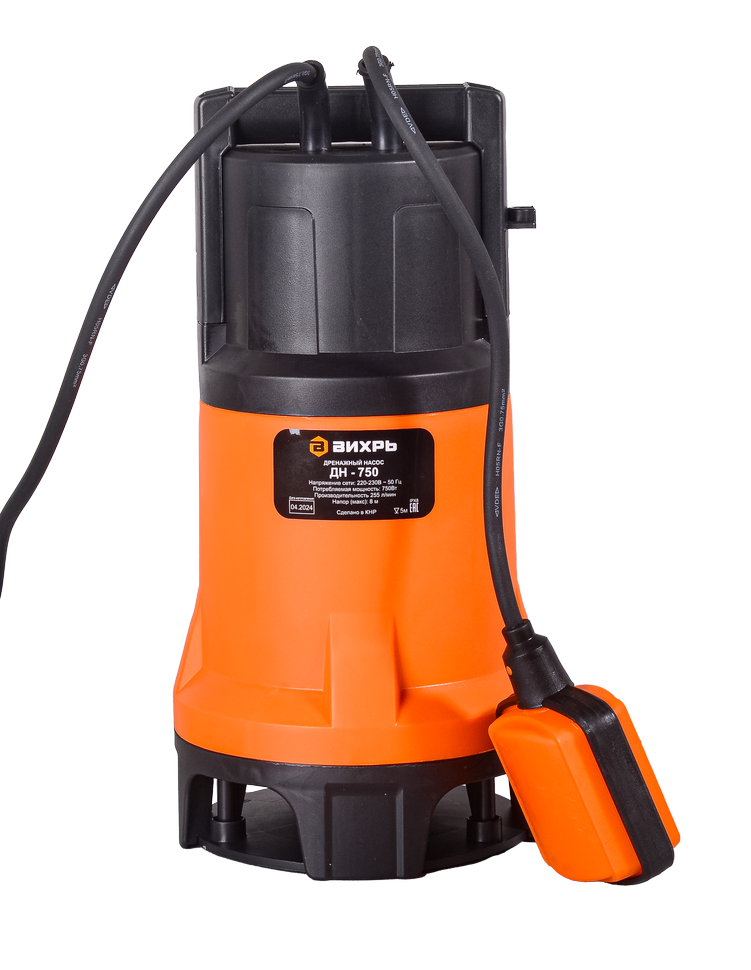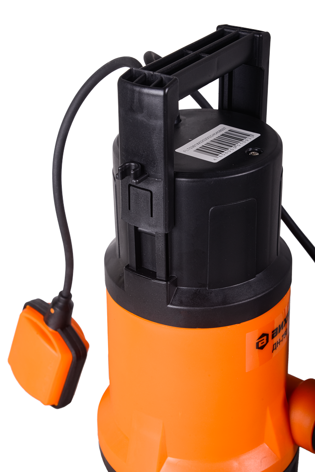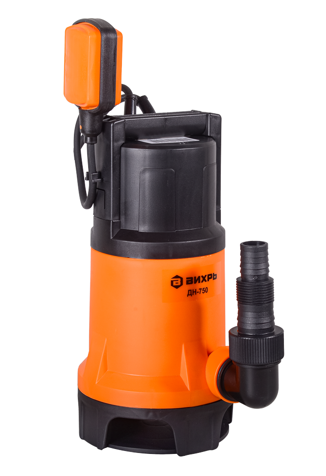 Дренажный насос оснащен поплавковым выключателем для предотвращения работы «всухую». Длина кабеля поплавка настраивается в зависимости от дебета водоема, чтобы двигатель отключался при достижении минимального или максимального уровня воды. В модели Вихрь ДН-750 нижний забор воды, это необходимо учесть при установке уровня выключения насоса. Количество срабатываний не должно превышать 20 в час.