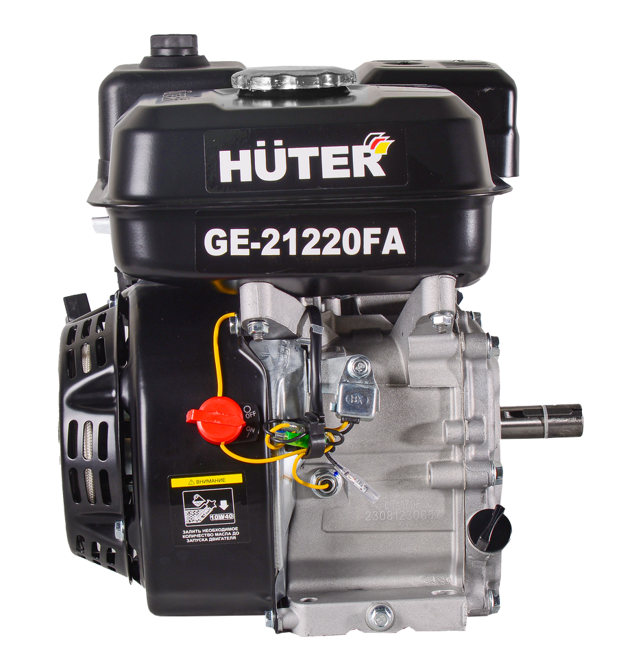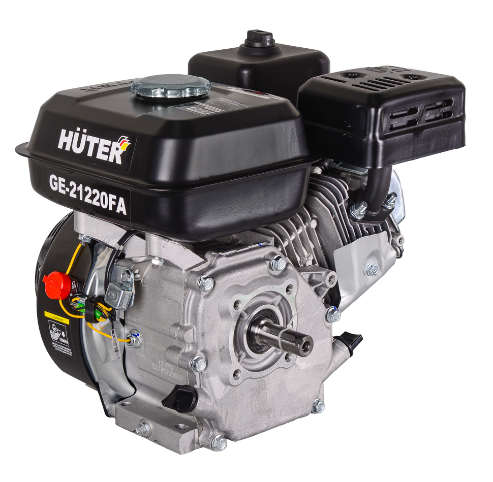 HUTER GE-21220FA – модель бензинового двигателя с выходным валом в виде шпонки, ориентированного на работу в качестве силового агрегата мотокультиваторов, мотопомп, снегоуборщиков, бензиновых измельчителей, виброплит. Агрегат компактный, обладает отличными техническими характеристиками и эксплуатационными качествами.