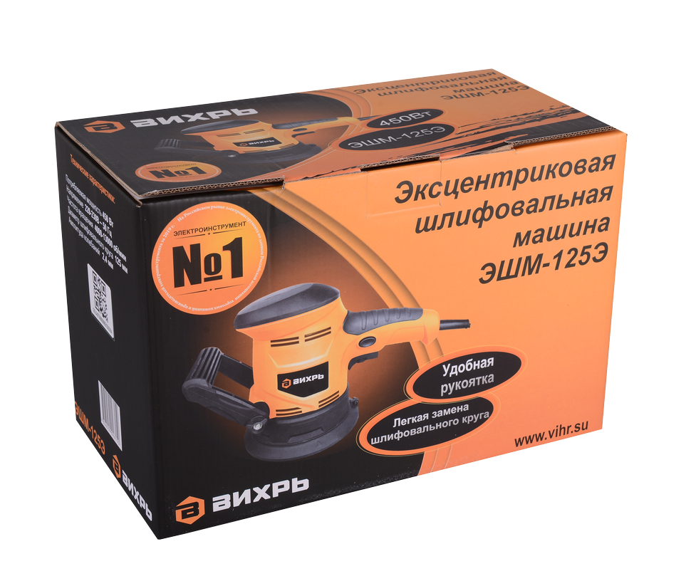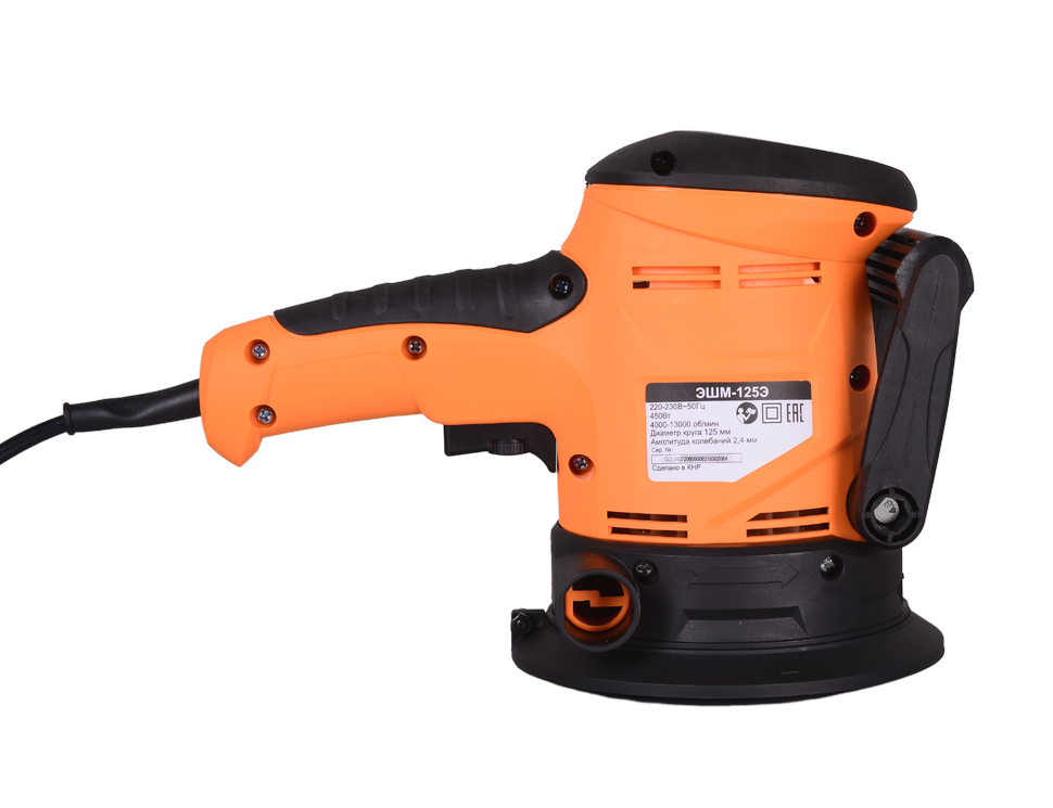 Эксцентриковая шлифовальная машина Вихрь ЭШМ-125Э мощностью 450 Вт с регулировкой оборотов, пылесборником, дополнительной ручкой будет полезна при проведении грубого и деликатного шлифования, полировки, межслойной обработки покрытий.