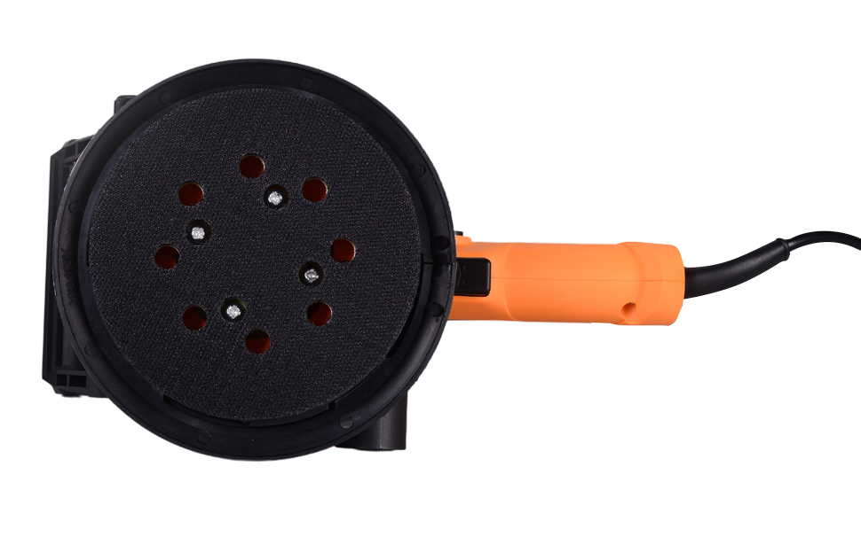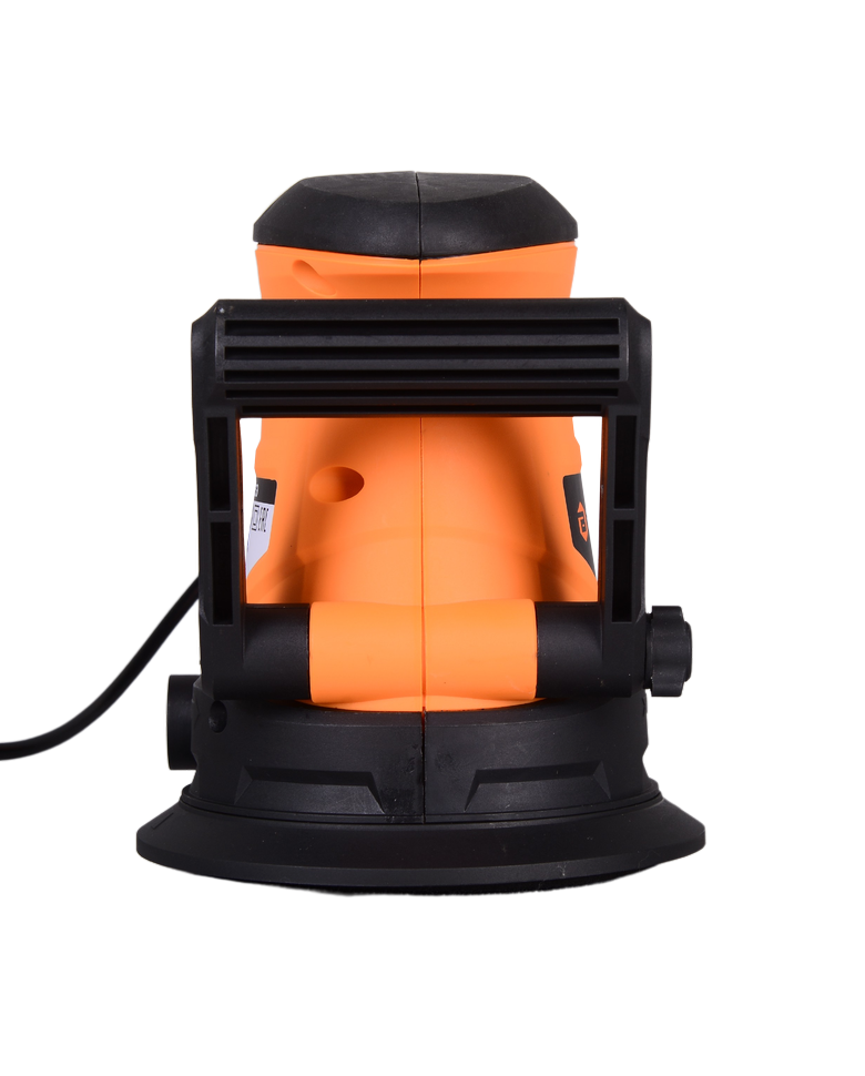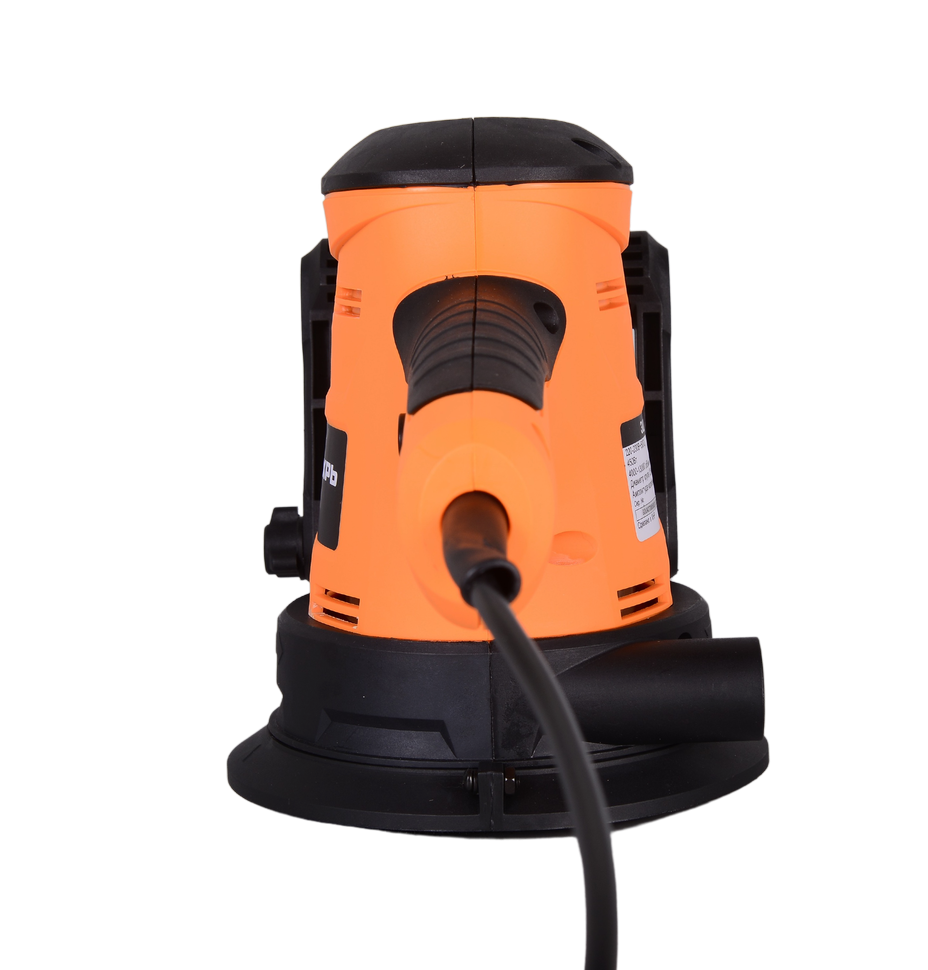 Устройство упростит обработку профильных, объемных, криволинейных поверхностей большой площади. Шлифовальная подошва диаметром 125 мм вращается по орбите и одновременно крутится вокруг своей оси. Такое комбинированное вращение позволяет добиться высокого качества шлифования практически без погрешностей. Круги разной зернистости легко фиксируются на подошве благодаря наличию липучки. Регулировка оборотов позволяет выбрать оптимальный режим (4000-13000 об/мин). Скорость вращения можно регулировать силой нажатия на клавишу выключателя, что дает возможность более тонкой настройки режима работы. Шлифмашина весит 2,1 кг. Для удобства использования корпус оснащен двумя ручками: основная расположена в непосредственной близости от выключателя, дополнительная может менять угол наклона для повышения комфортности удержания. В подошве предусмотрены технологические отверстия для вентилирования устройства, отведения пыли и опилок, пылесборник входит в базовую комплектацию.