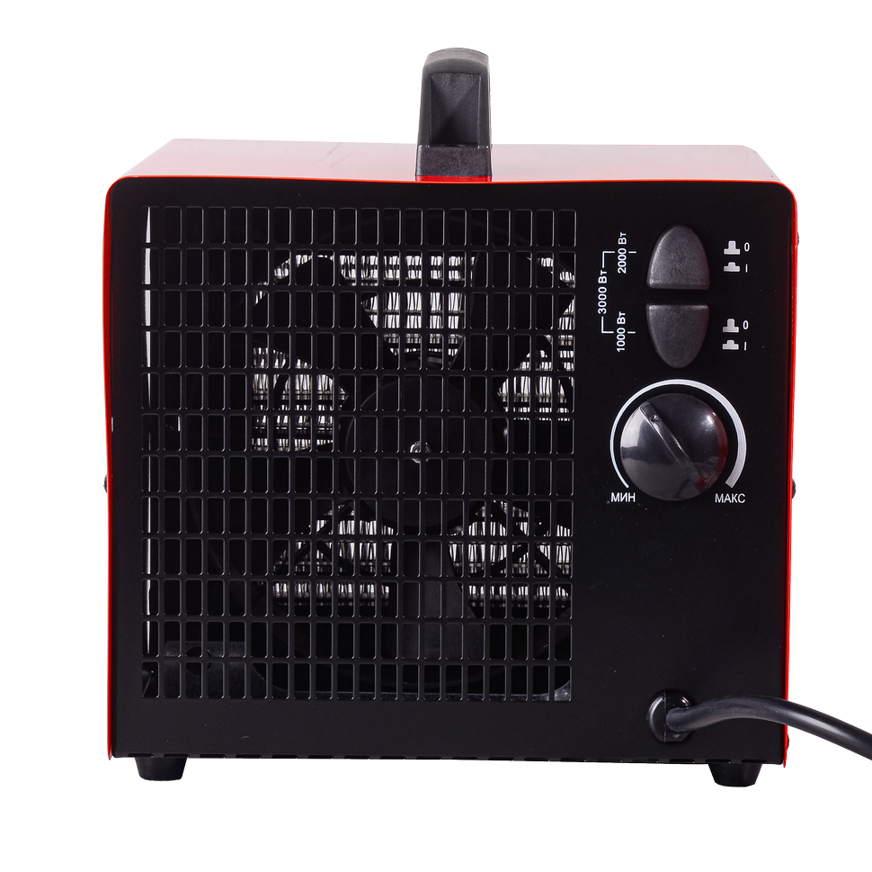 Тепловая пушка квадратной формы, корпус которой выполнен из прочного и устойчивого к коррозии металла, оснащена ручкой для удобства транспортировки. Её можно переносить между помещениями и использовать в нескольких режимах, в половину силы - мощностью в 1500 Вт, или в полную силу - 3000 Вт. Настройки легко задать при помощи кнопок и поворотной ручки термостата на корпусе.