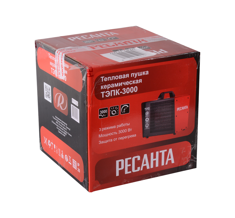Электрическая теплопушка Ресанта ТЭПК-3000 оснащена нагревательным элементом из керамики и подходит для подключения к сети с однофазным напряжением – 220 В. Благодаря встроенной защите от перегрева электрическая тепловая пушка обладает повышенной пожарной безопасностью. Термозащита гарантирует отключение агрегата при достижении критических температур.