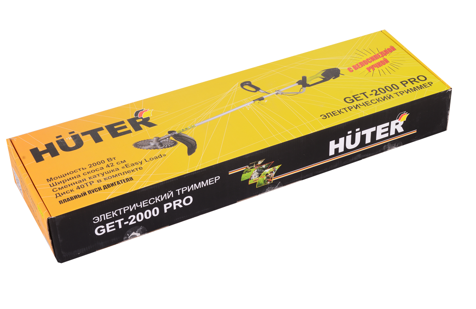 Электротриммер GET-2000 PRO Huter мощностью 2000 Вт предназначен для ухода за придомовыми и садовыми участками. Компактные габариты и маневренность позволяют скашивать траву в труднодоступных местах: между деревьев, вдоль грядок, клумб и ограждений. Двигатель имеет верхнее расположение, соединен с рабочей частью напрямую вращающимся металлическим валом. Система воздушного охлаждения препятствует его перегреву. Плавный запуск снижает жесткие пусковые нагрузки и продлевает ресурс рабочих узлов.
