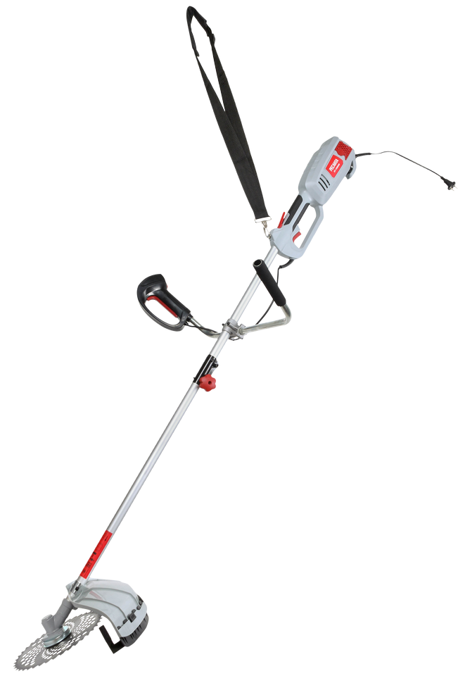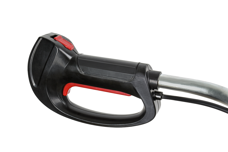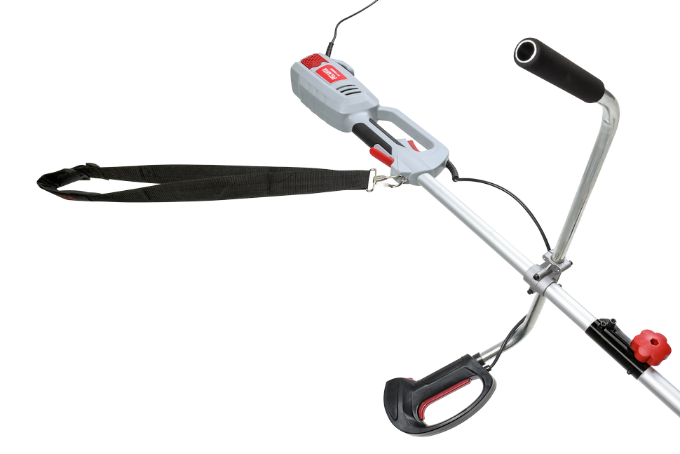 Электротриммер оснащен жестким приводным валом, что позволяет использовать его на запущенных участках. Маневренный инструмент позволяет удалять траву в труднодоступных местах: вдоль ограждений и вокруг деревьев. Элементы управления вынесены на рукоятку велосипедной формы. Плавный запуск обеспечивает включение без рывков, снижает пиковую нагрузку на электросеть.