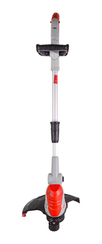 Устройство подключается к сети 220 В. Небольшие размеры и лёгкий вес способствуют быстрой и удобной эксплуатации, транспортировке и обслуживанию. Электрический триммер легко управляется с помощью телескопической штанги, которая облегчает работу на труднодоступных участках. Электродвигатель находится в нижней части технического средства, поэтому трава на участке не должна быть мокрой, во избежания попадания воды в механизм. Конструкция оснащена специальным кожухом, защищающим оператора от выброса скошенной травы.