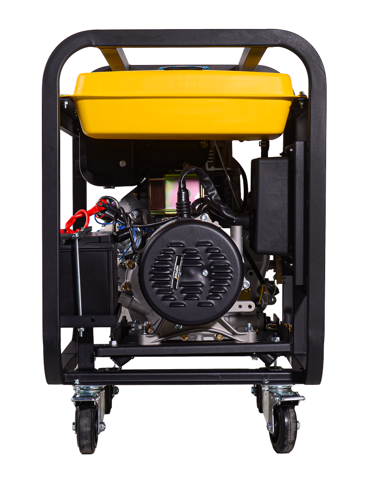 За генерацию электроэнергии отвечает двигатель, работающий на дизеле. Мощность мотора равна 11 л. с. Отличается экономным потреблением топлива – всего 375 г/кВтч. Так как топливный бак вмещает 14 л, полной заправки хватает на продолжительное время работы.