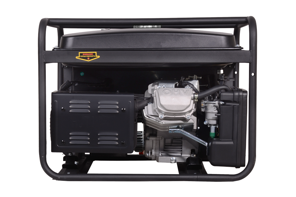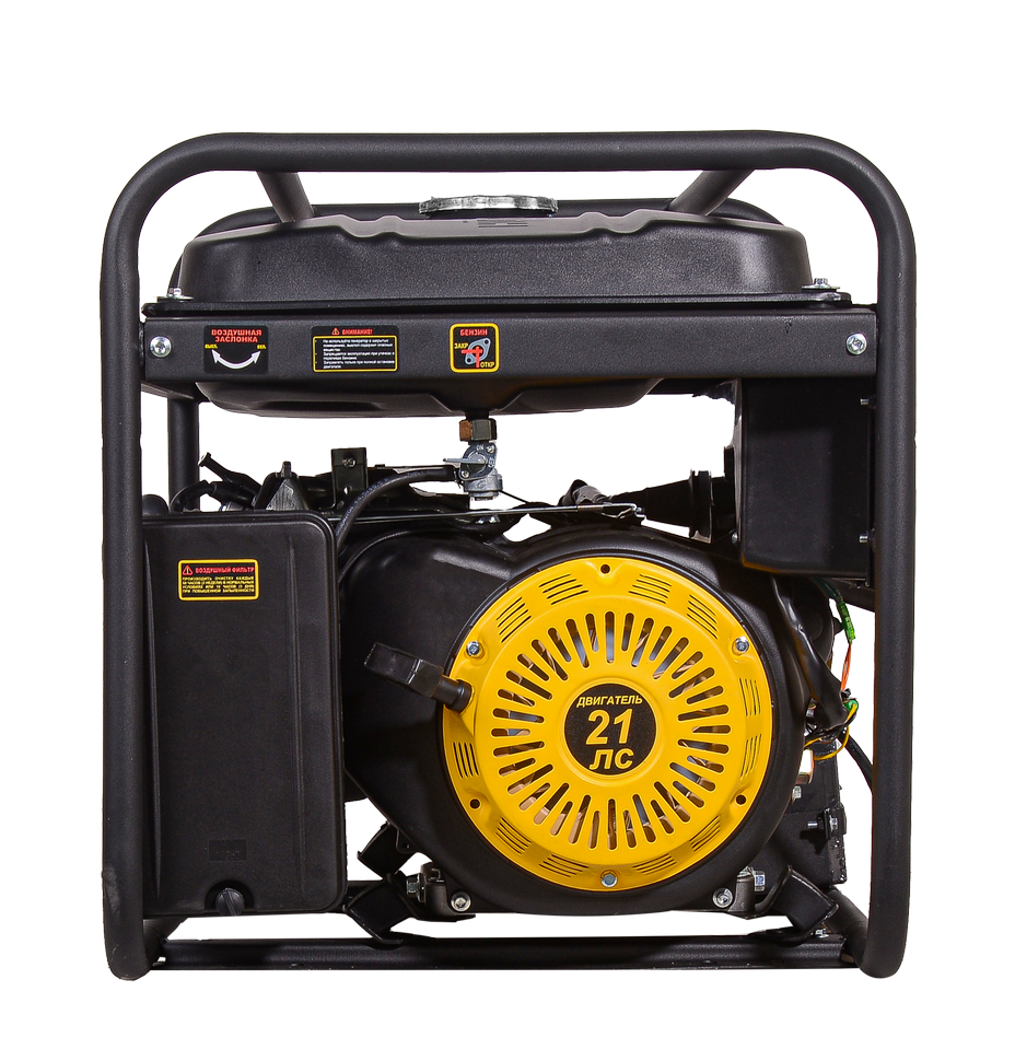 Генератор оборудован мощным и надёжным четырёхтактным бензиновым двигателем объёмом 21 л.с., который гарантирует стабильность работы и высокую производительность. Максимальная мощность генератора равна 11 000 Вт, а номинальная — 9 600 Вт. Благодаря этому можно подключать различные мощные устройства, такие как сварочные аппараты, насосы, инструменты и бытовые приборы. Бак для бензина на 25 л обеспечивает продолжительную работу без частой заправки топливом. Расход составляет 375 г/кВтч, что делает генератор экономичным в использовании. Объём масляной системы 1100 мл гарантирует надёжную защиту двигателя и увеличивает срок его службы.