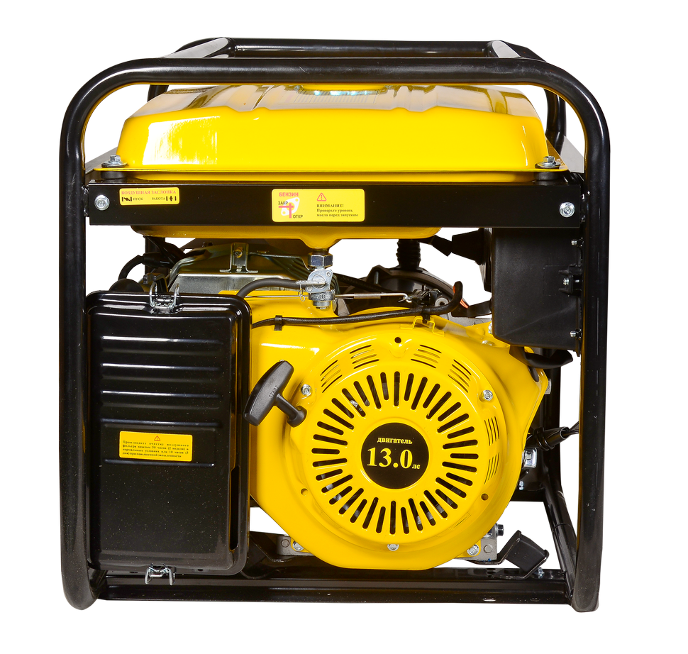 Генератор оснащен 4-тактным одноцилиндровым бензиновым двигателем с воздушным охлаждением, работает на неэтилированном бензине АИ-92. При установке дополнительного оборудования может работать на пропан-бутане. Емкий бензобак на 22 л позволяет работать длительное время без перерыва. Оснащен индикатором уровня топлива. На дисплей выводится информация о количестве моточасов, величине напряжения и тока.