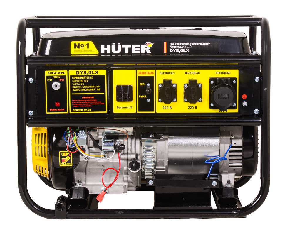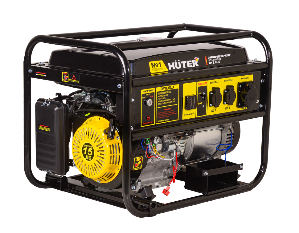 Электрогенератор HUTER DY8,0LX – портативная электростанция мощностью 6.5 кВт, оснащена одноцилиндровым четырёхтактным бензиновым двигателем с воздушным охлаждением мощностью 15 л.с. HUTER DY8,0LX незаменим в качестве источника электропитания на удаленных территориях, где нет магистрального электроснабжения и в качестве резервного источника питания при аварийном отключении электроэнергии. Бензогенератор имеет бензобак емкостью 25 л, расход топлива 375 г/кВтч оптимально подходит для строительства, ремонтных и монтажных работ, при использовании проф. оборудования, запитанного от стандартной сети 220 В.