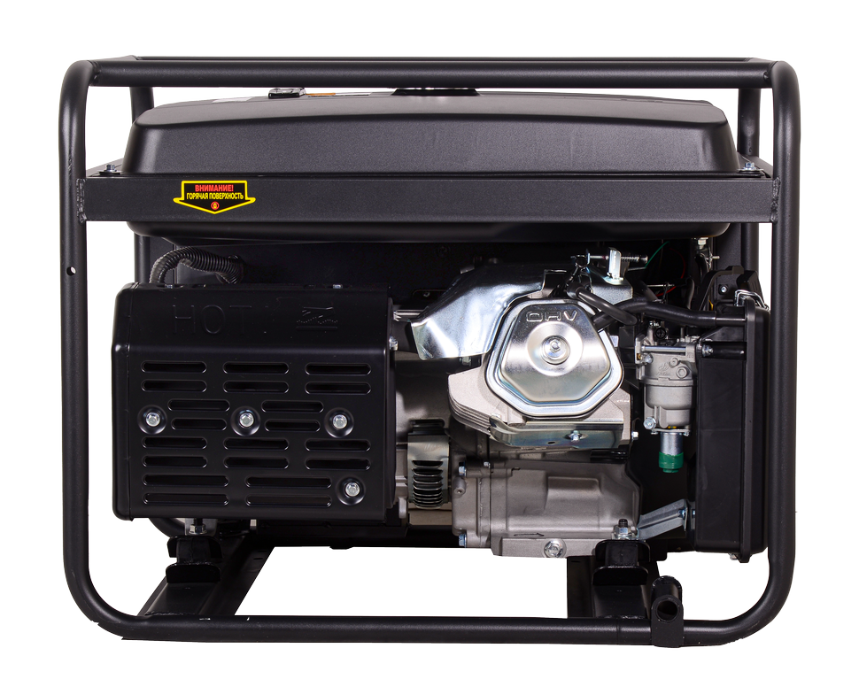 имеет ручной стартер, позволяющий запускать бензогенератор в любых условиях.