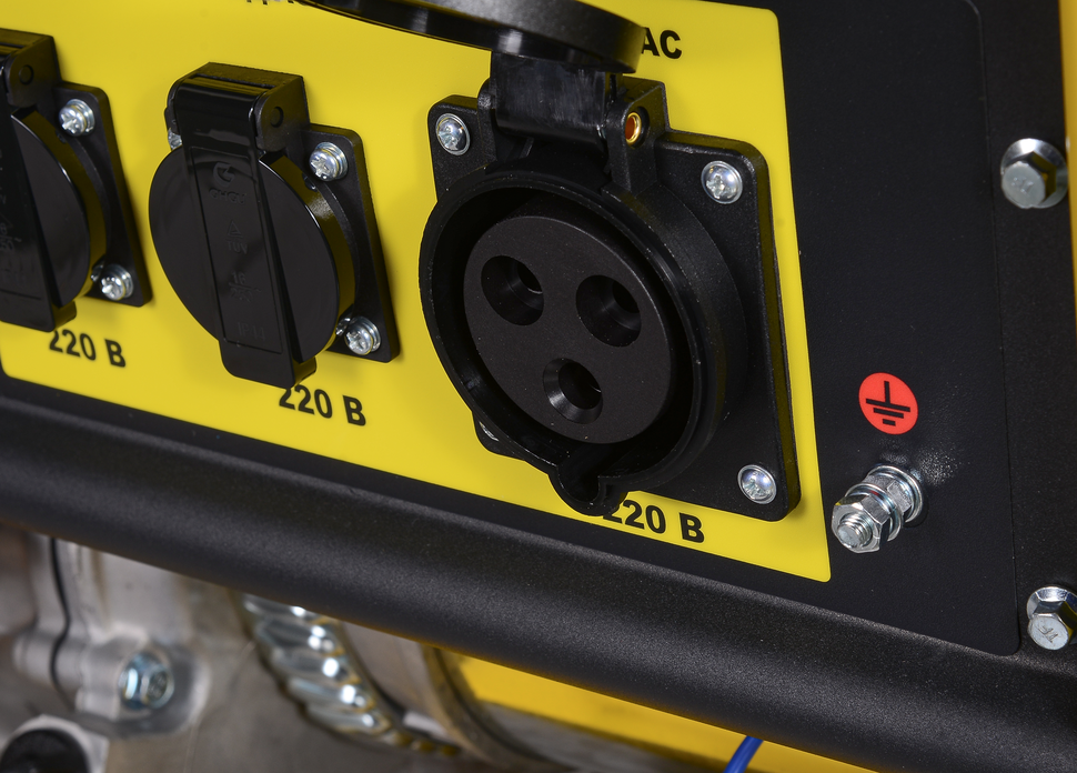 Генераторная часть представляет собой синхронный щеточный альтернатор, который вырабатывает однофазный переменный ток с номинальными параметрами: напряжение 220-230 В, частота 50 Гц. Агрегат обеспечивает номинальную выходную мощность 7500 Вт и максимальную (пусковую) мощность 8000 Вт, что позволяет подключать электродвигатели с высокими пусковыми токами (насосы, холодильники, электроинструмент). Для контроля основных параметров работы на панели управления установлен многофункциональный дисплей.