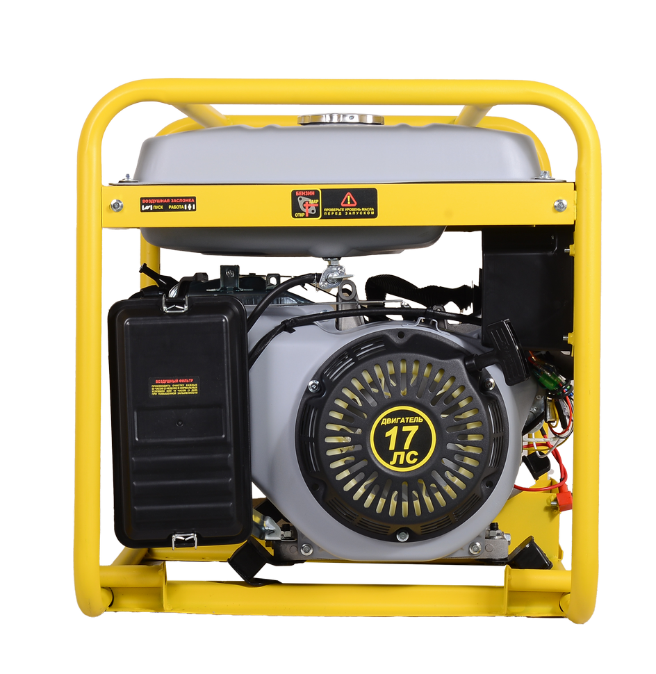 Основой установки служит четырёхтактный одноцилиндровый бензиновый двигатель с номинальной мощностью 17 л.с., отличающийся высокой надежностью и умеренным расходом топлива (375 г/кВт·ч). Двигатель работает на бензине, а при установке дополнительного газового оборудования может использовать пропан-бутан. Для удобства запуска в любых условиях станция оснащена комбинированной системой запуска: ручным стартером и электростартером от аккумулятора (12 В).