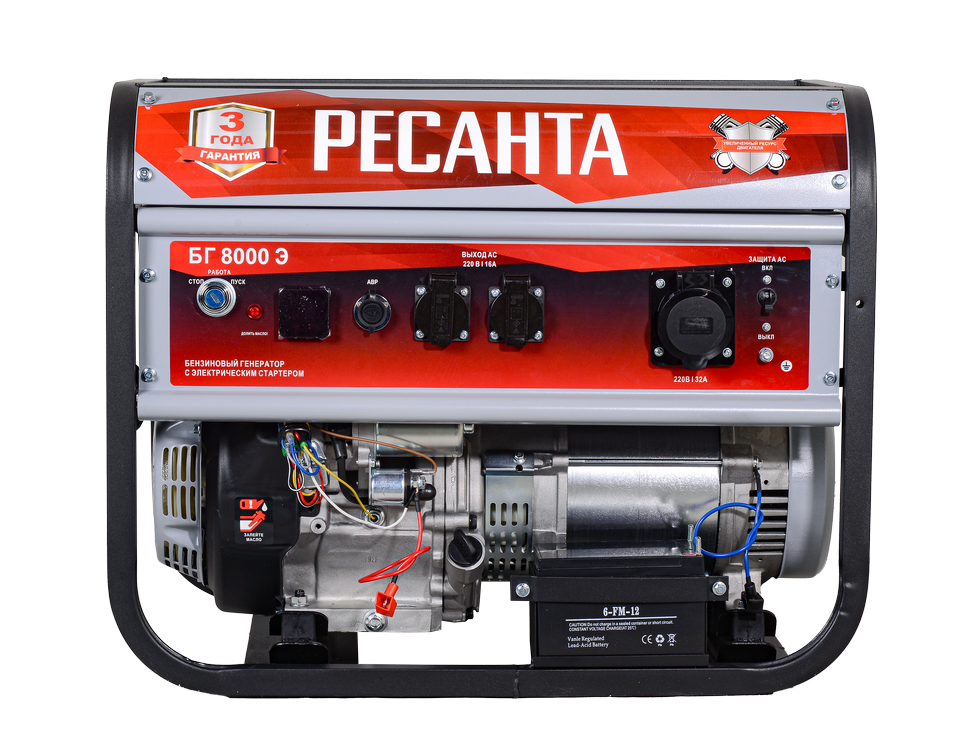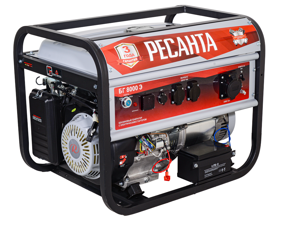 Бензогенератор модели Ресанта БГ 8000Э с увеличенным ресурсом двигателя – электрический агрегат, с помощью которого можно обеспечить автономное электроснабжение. Генерация энергии происходит благодаря работе карбюраторного четырехтактного бензинового двигателя, заправляемого неэтилированным бензином АИ-92.
