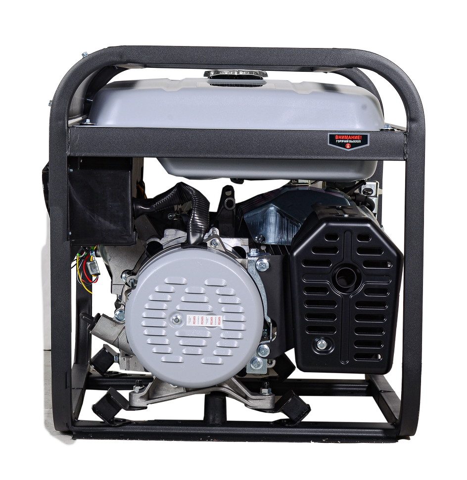 Бензогенератор работает на неэтилированном бензине АИ-92. Одноцилиндровый двигатель мощностью 17 л. с. с воздушным охлаждением имеет увеличенный ресурс. Запуск осуществляется вручную. Модель оснащена 2 розетками 16А и дополнительно розеткой 32А, что делает возможным одновременное подключение 1-3 приборов. Электрогенератор имеет защиту от короткого замыкания, перегрузок в сети, отсутствия масла. Корпус установлен на усиленную металлическую раму. В комплектацию входят резиновые опоры, которые помогут снизить вибрацию и повысить устойчивость конструкции. Использование агрегата существенно упрощено за счет наличия памятки и указателей на русском языке на его корпусе.