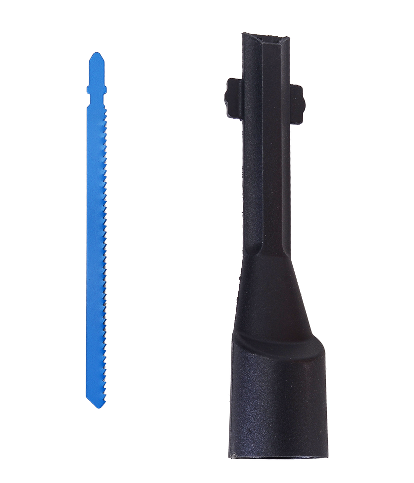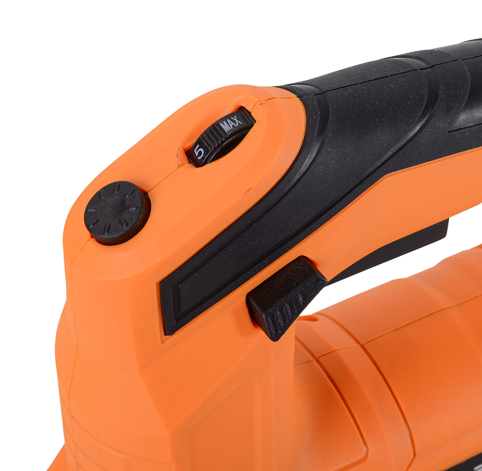 Электролобзик имеет защиту от случайного пуска, что повышает качество и безопасность пользования. Для эффективного охлаждения двигателя на корпусе предусмотрены вентиляционные отверстия. Также имеется возможность подключения патрубка строительного пылесоса для обеспечения чистоты на рабочем месте.