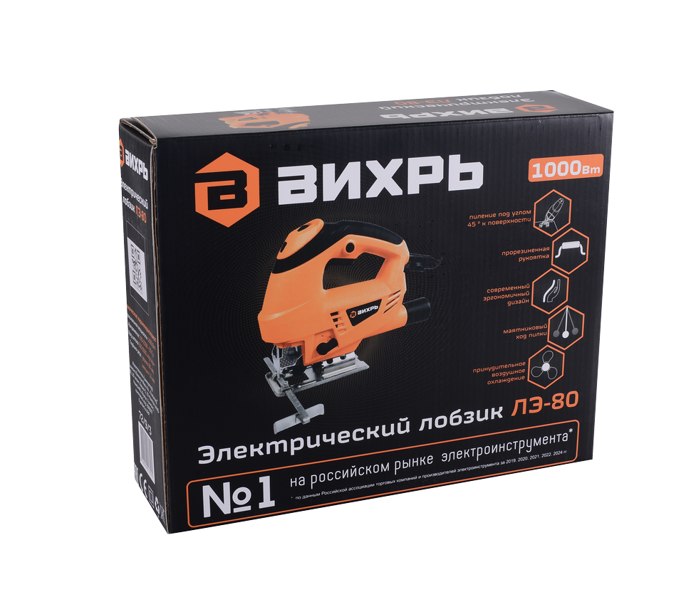 Электролобзик Вихрь ЛЭ-80 имеет возможность подключения к пылесосу. Скобовидная рукоятка предназначена для удобства при длительной работе. Прорезиненные вставки уменьшают скольжение при вибрации. Возможность регулировки наклона подошвы до 45° позволяет создавать косые распилы. Электролобзик оснащен винтовым креплением пилки. Штампованная стальная подошва обеспечивает малый вес инструмента 2,1 кг. Лобзик оснащен проводом длиной 2 м для свободы движений во время работы.