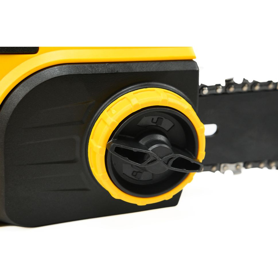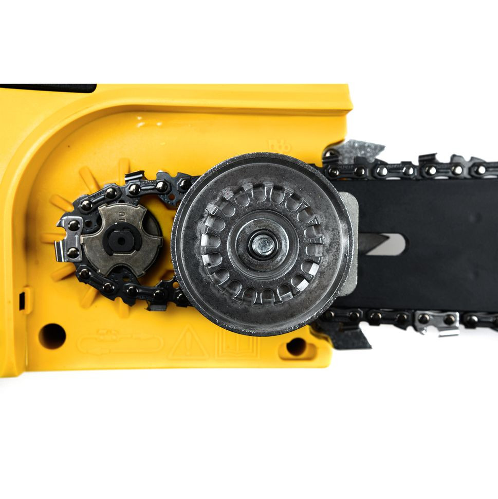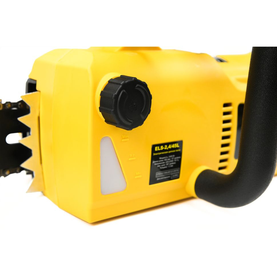 Автоматическая система подачи цепного масла включает в себя масляный бак. Для удобства определения уровня смазки он оснащен мерной шкалой и смотровым окошком. Масло облегчает скольжение и исключает перегрев металлических деталей цепи во время работы. Модель оснащена системой быстрого натяжения цепи.