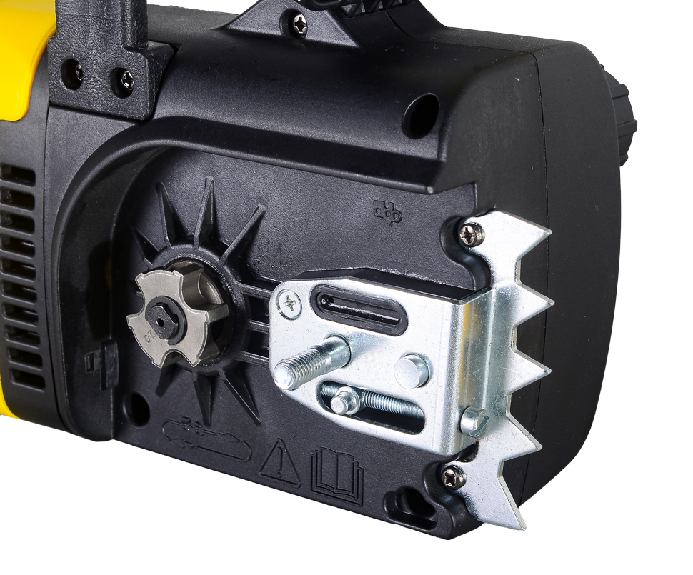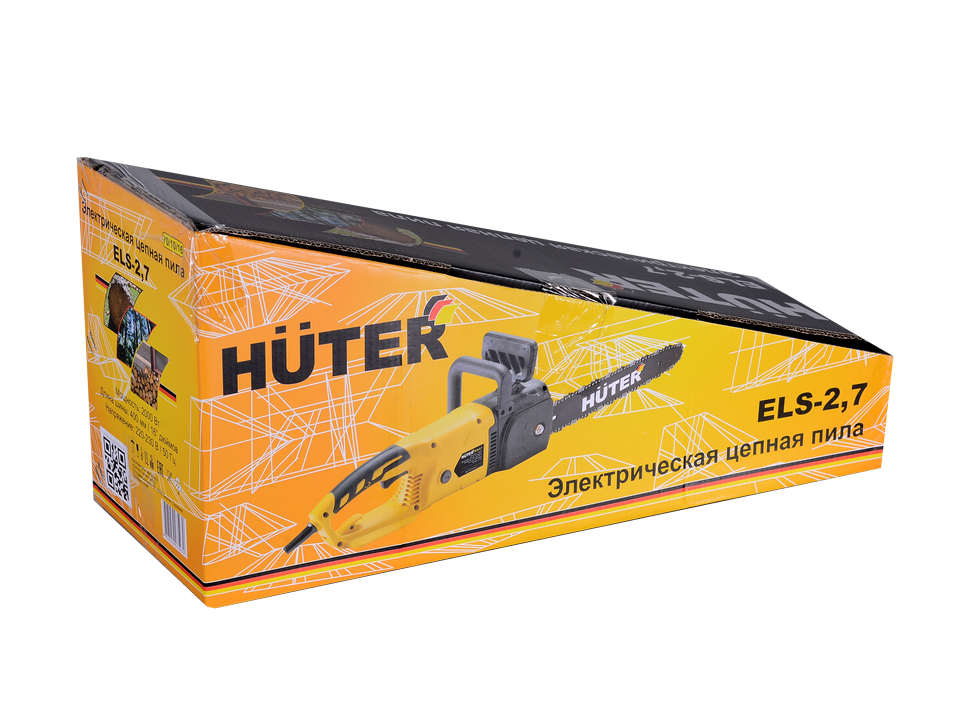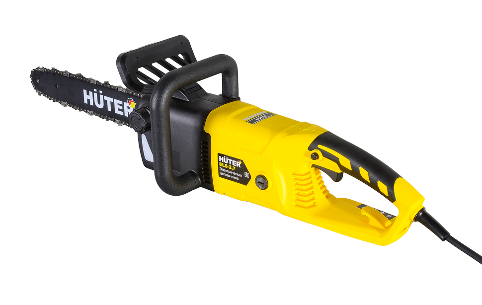 В модели Huter ELS-2,7 используется цепь с 57 звеньями толщиной 1,3 мм, которые расположены с шагом 3/8”. Масло для смазки цепи автоматически подается на цепь, снижает трение между зубьями и шиной, предотвращает перегрев и их быстрый износ. Скорость вращения достигает 13,6 м/сек. Для предотвращения травматизма установлены защита от случайного пуска и тормоз цепи.