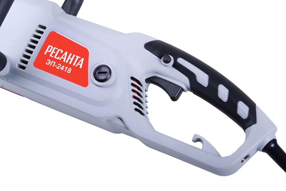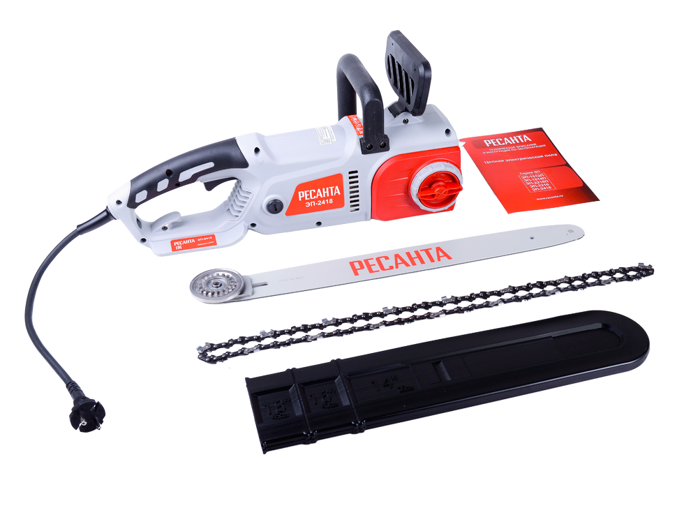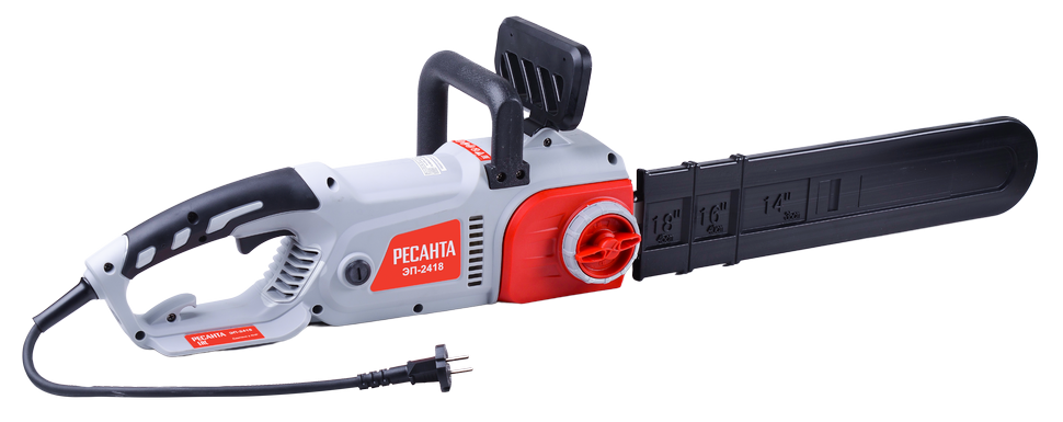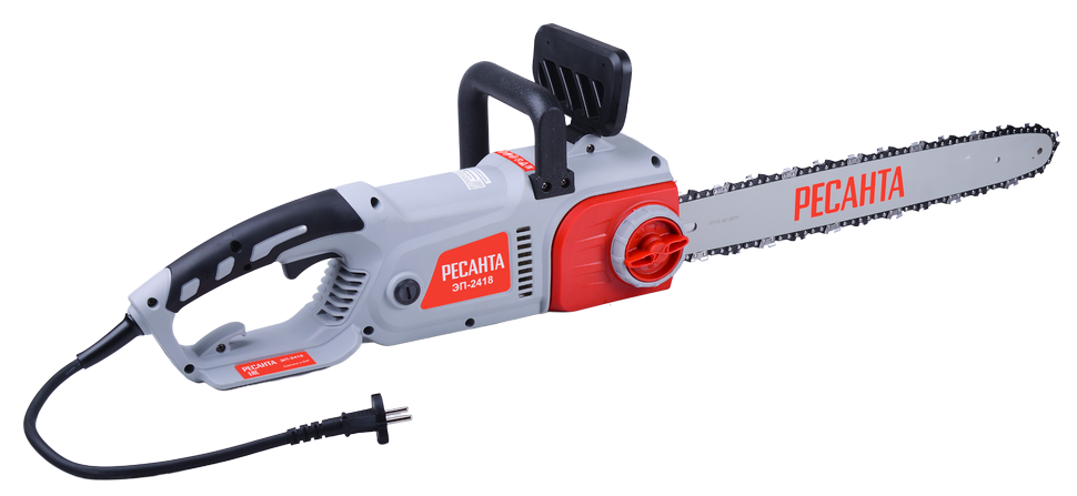 Электропила Ресанта ЭП-2418 имеет вес 5,2 кг. Электрическая модель отличается низким уровнем шума 64 дБ. Отсутствие токсичных выхлопов позволяет использовать ее в закрытых невентилируемых помещениях. Тормоз цепи защищает от отскока во время пиления. Прорезиненные рукоятки обеспечивают надежный хват. Блокировка случайного включения исключает непреднамеренный запуск.