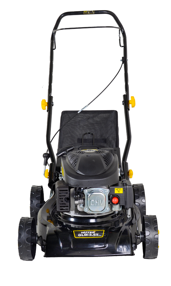 Бензиновая газонокосилка HUTER GLM-3.5T выполнена из качественных и прочных материалов. Металлический корпус устойчив к повреждениям и образованию коррозии. Элементы управления вынесены на рукоять. Запуск осуществляется с помощью ручного стартера. Пластиковые колеса не мнут траву и позволяют без усилий передвигать агрегат по участку. Нож с прямым приводом вращается от вала двигателя и упрощает техническое обслуживание газонокосилки. Складная рукоятка регулируется в зависимости от роста пользователя.
