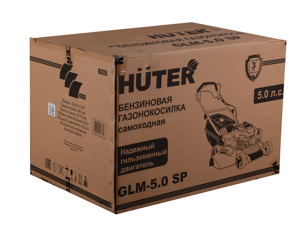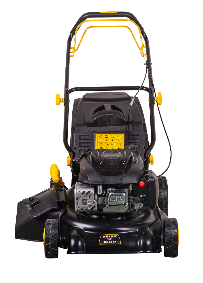 Конструкция предусматривает привод задних колёс, содействующий быстрому и лёгкому управлению техническим средством. Корпус выполнен из ударопрочного металла, не подверженного механическим повреждениям. Модель Huter GLM-5.0 SP характеризуется высокой скоростью вращения - 2800-3200 об/мин, шириной скоса - 460 мм. В комплектацию входит пластиковый травосборник, вместимостью 50 л - что позволяет не отвлекаться на выгрузку скошенной травы. Для удобства работы оператора, лёгкую складывающуюся рукоятку можно установить на оптимальную высоту.