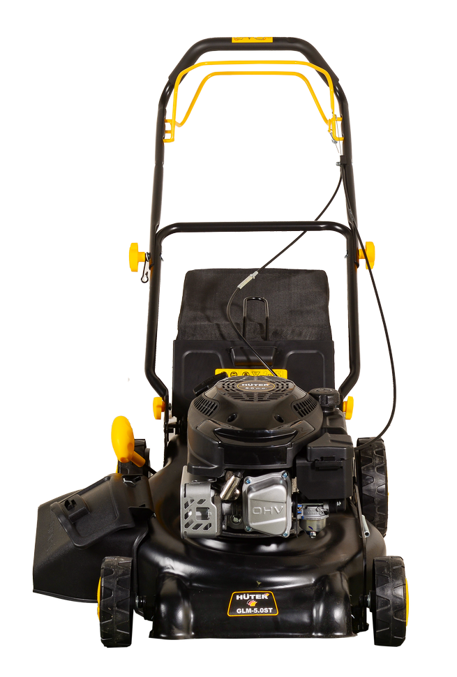 Бензиновая газонокосилка HUTER GLM-5.0 ST – самоходная модель, не требующая усилий в процессе управления. Вращение колес и режущего ножа происходит от энергии двигателя, достаточно только корректировать направление движения. Увеличенный диаметр задних колес обеспечивает проходимость на участках любой сложности. Металлический корпус устойчив к повреждениям и коррозии. Он скрывает режущий элемент, исключая риск травматизации.