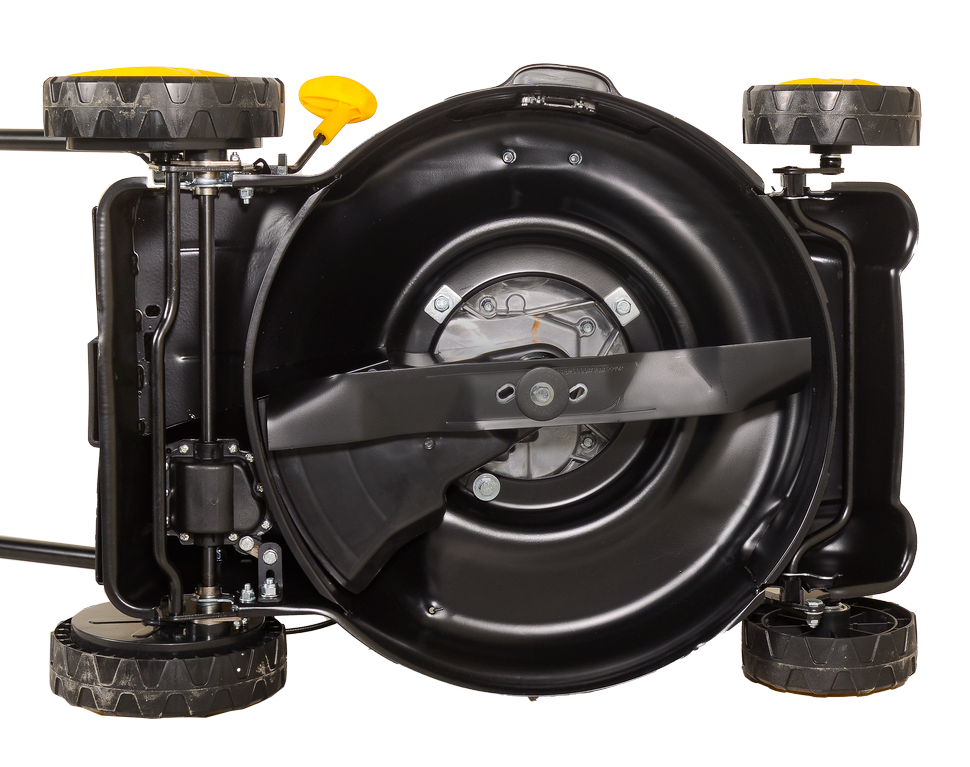 Длина режущего элемента обеспечивает ширину скашивания 46 см. Это позволяет быстро срезать траву на большой площади. Маневренность модели обеспечивает качественную обработку территории со сложным ландшафтом, позволяет проходить между деревьями, кустарниками и дорожками. Центральная регулировка высоты среза растительности имеет 7 уровней в диапазоне от 25 до 75 мм. Предусмотрен боковой выброс травы или ее сбор в тканевый травосборник. Это позволяет поддерживать порядок на участке во время работы. Объем травосборника 60 л не требует частого его опорожнения. Функция мульчирования используется для измельчения скошенной травы и последующего ее использования в качестве удобрения или уплотнения газонного покрытия.