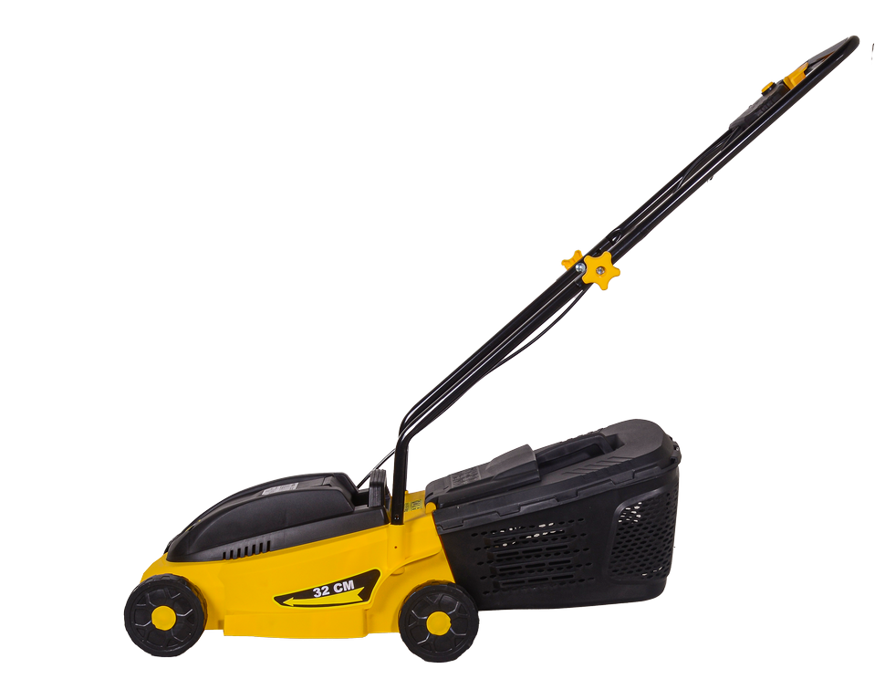 Устройство комплектуется надежным двигателем мощностью 1100 Вт. В отличие от бензиновых и аккумуляторных моделей электрокосилка не нуждается в подготовке: ее не нужно заправлять или заряжать, достаточно подключить к обычной электросети. Такое решение позволяет пользоваться агрегатом в течение длительного времени без необходимости делать перерыв на дозаправку, зарядку аккумулятора. Высота среза регулируется индивидуально в диапазоне от 20 до 55 мм. Скорость вращения металлических ножей составляет 3100 об./мин, этого достаточно для эффективной стрижки газона, скашивания мягкой поросли. Ширина среза составляет 320 мм. Скошенная трава поступает в пластиковый резервуар объемом 35 л, что избавляет от дополнительных работ по уборке. Электрическая газонокосилка весит 8,5 кг. Она оснащена 4 колесами и длинной двойной ручкой для удобства передвижения по местности. Управление расположено с правой стороны рукоятки.