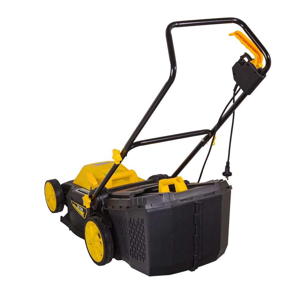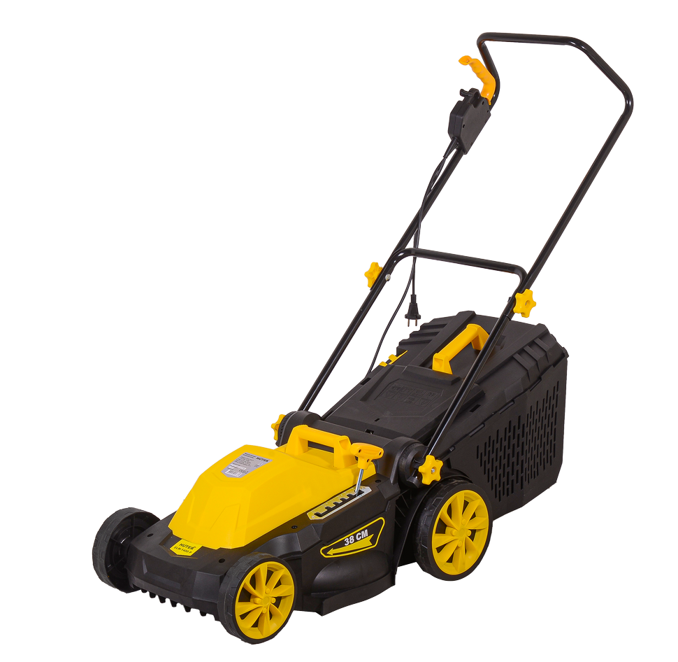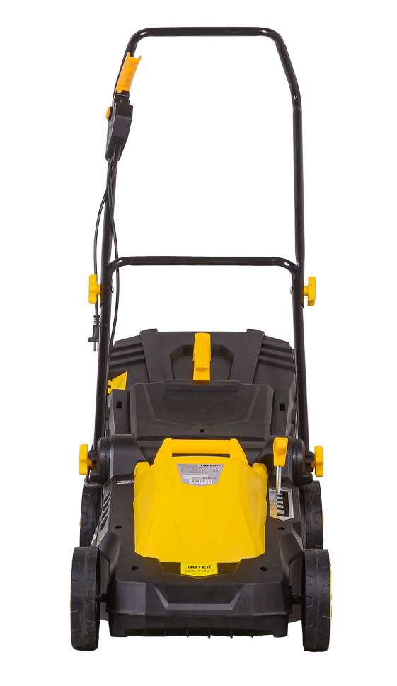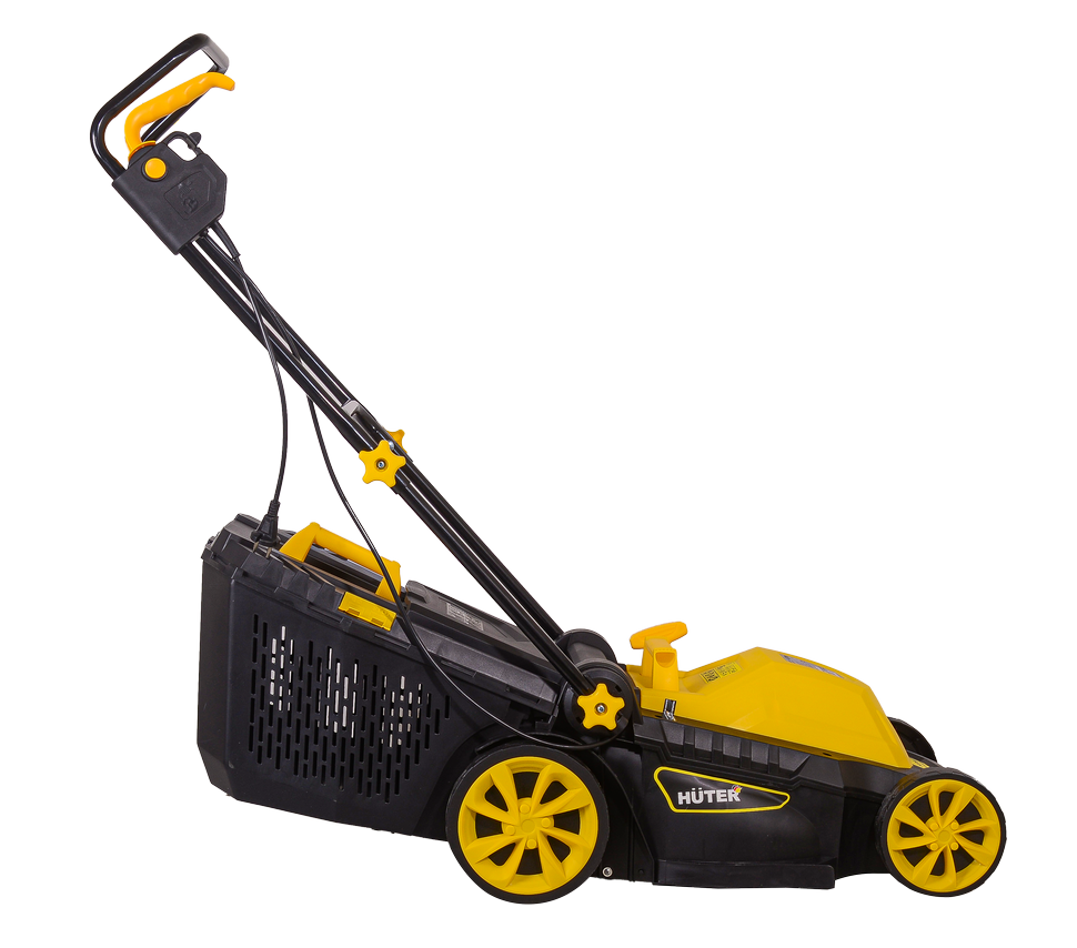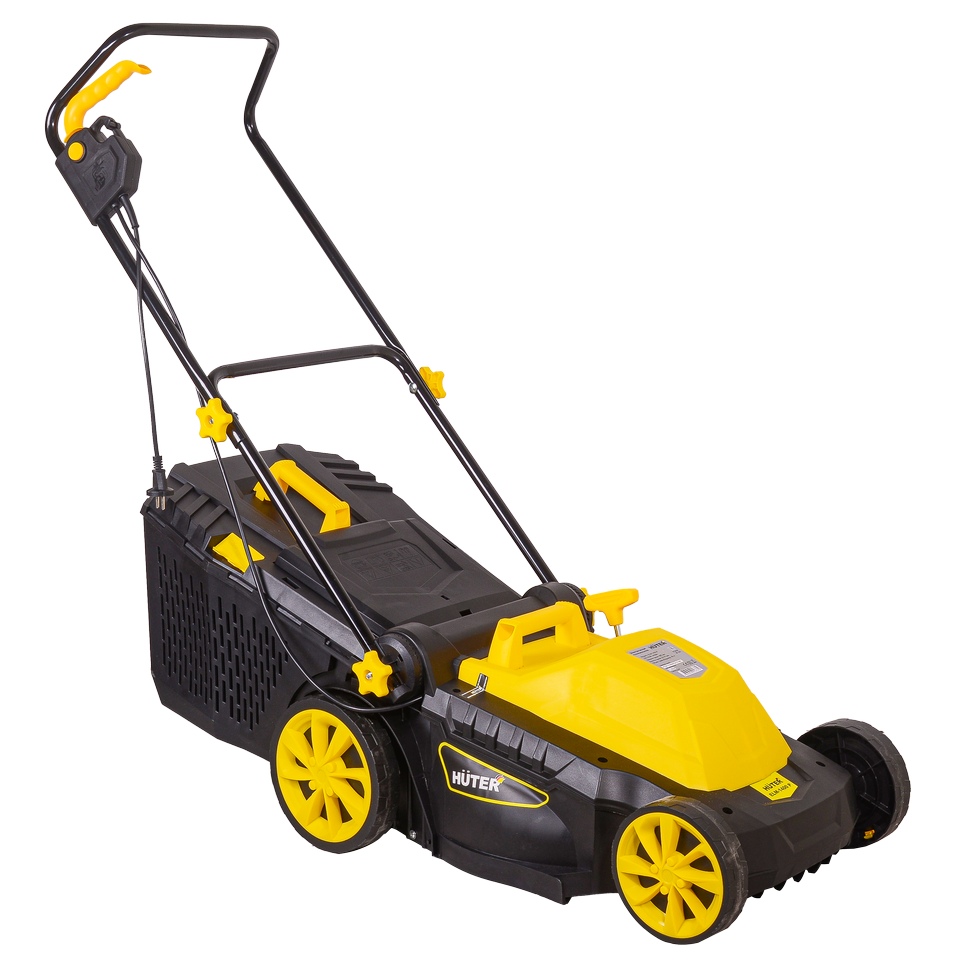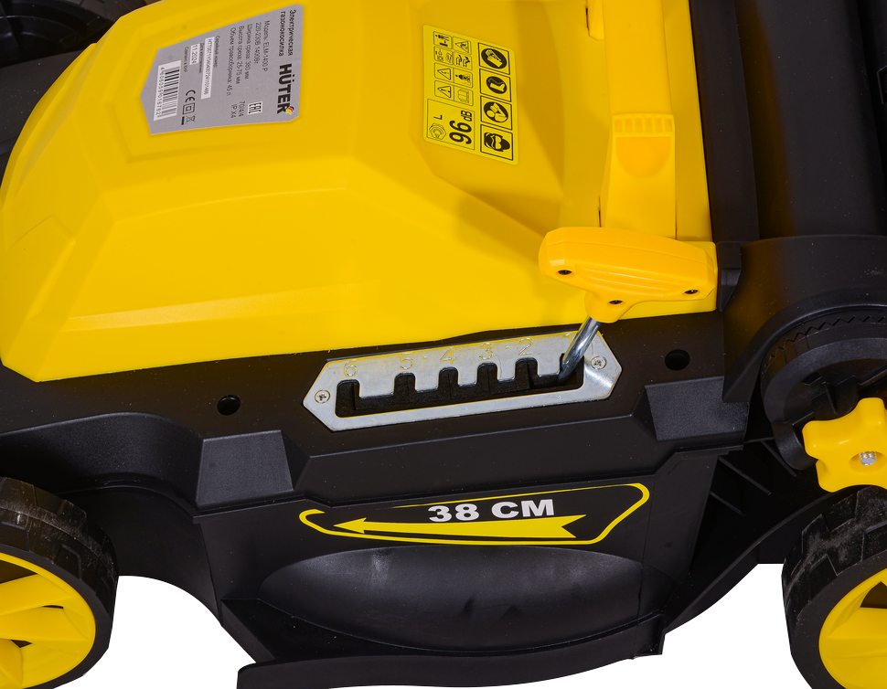 HUTER ELM-1400P имеет ширину среза 380 мм, что позволяет быстро обрабатывать газоны, свободно минуя кустарники и деревья. Высота скоса регулируется от 25 до 55 мм, вследствие чего удается избежать попадания посторонних предметов под нож и добиться идеально ровной поверхности травяного ковра. В электрической газонокосилке предусмотрена блокировка случайного запуска.