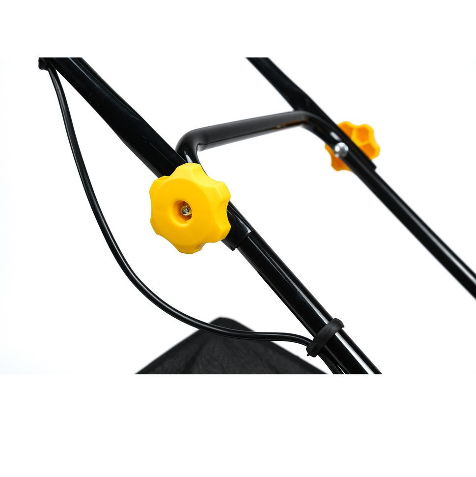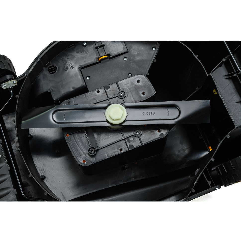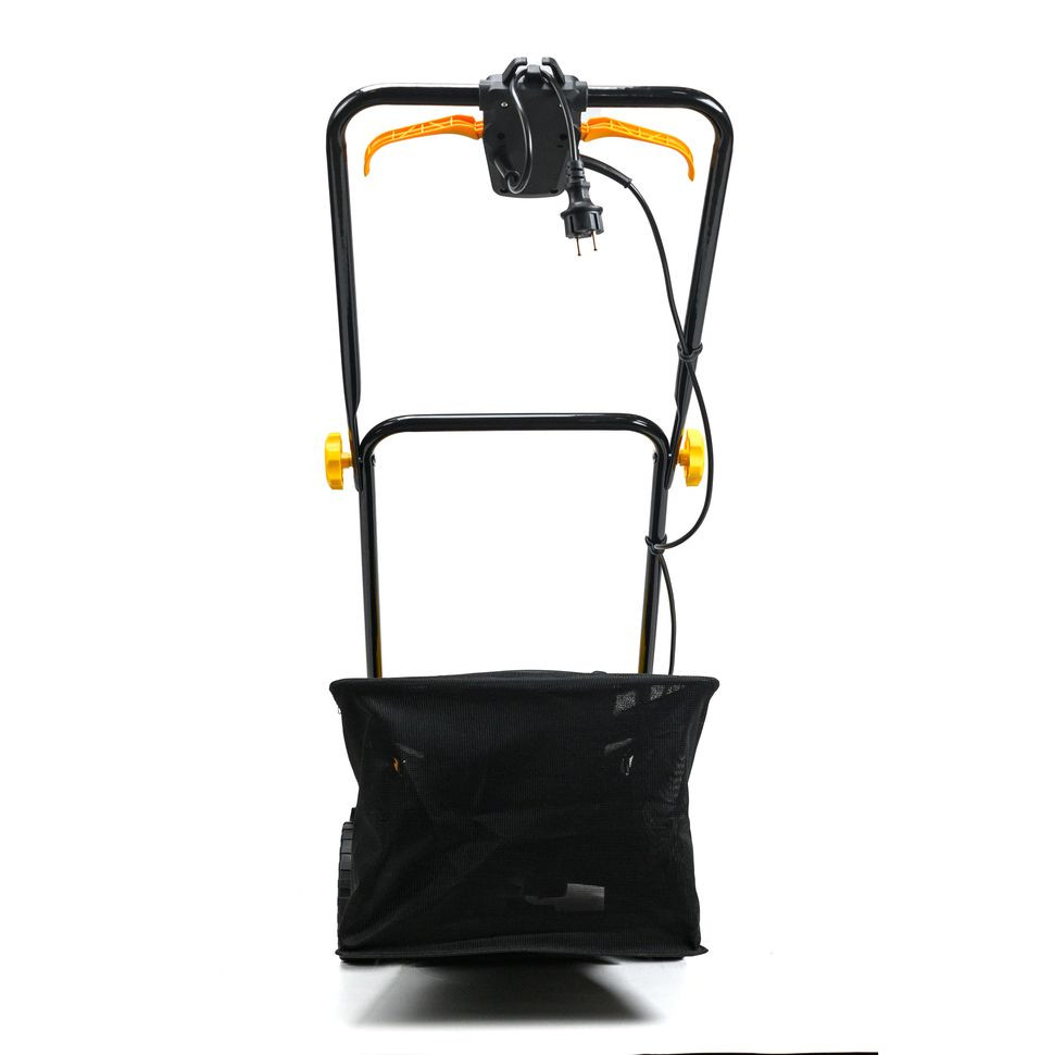 - Удобный объёмный травосборник из ткани вмещает целых 45 л скошенной травы.