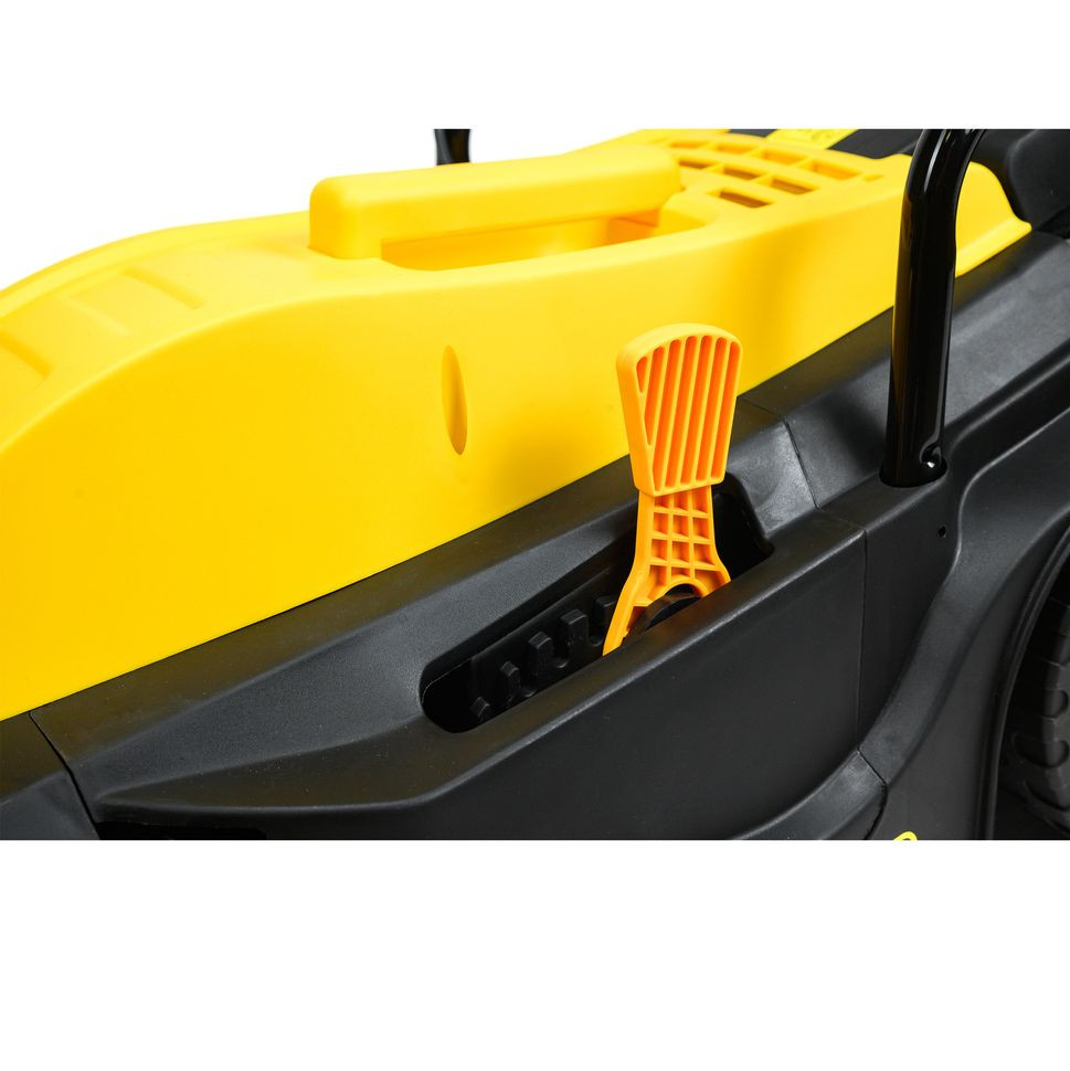 - Регулируемый диапазон высот стрижки позволяет настроить устройство под индивидуальные предпочтения владельца. Наличие центральной регулировки уровня срезания высотой от 20 до 55 мм гарантирует точное поддержание необходимой длины травы.