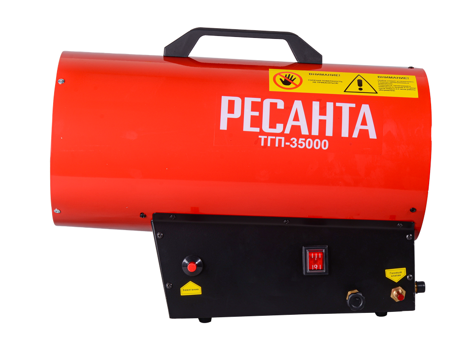 Газовая теплопушка Ресанта ТГП-35000 поможет обогреть нежилое помещение, не имеющее отопительной системы. Устройство не нуждается в длительном монтаже, легко переносится в руках, экономично расходует топливо и очень быстро наполняет теплым воздухом помещение.