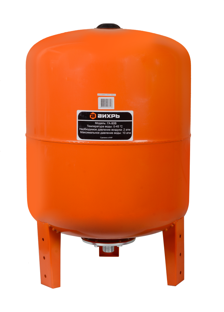 Гидроаккумулятор Вихрь ГА-80В - накопитель воды объемом 80 литров, специально разработанный для автономных систем водоснабжения. Корпус изготовлен из стали, сменная мембрана - из пищевой резины. Поэтому вода всегда будет чистой и безопасной для питья.