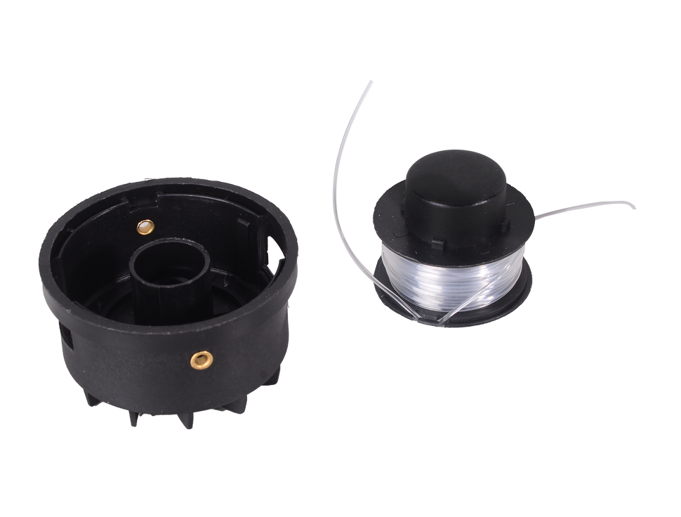 Леска имеет круглое сечение и диаметр 1,2 мм, длина - 5 м. Леска обеспечивает качественную стрижку газонной травы. Головка с леской позволяет быстро и эффективно обрабатывать большие территории. Концы лески выходят на нужную длину при нажатии кнопки на катушке о землю. Катушка выполнена из ударопрочного пластика.