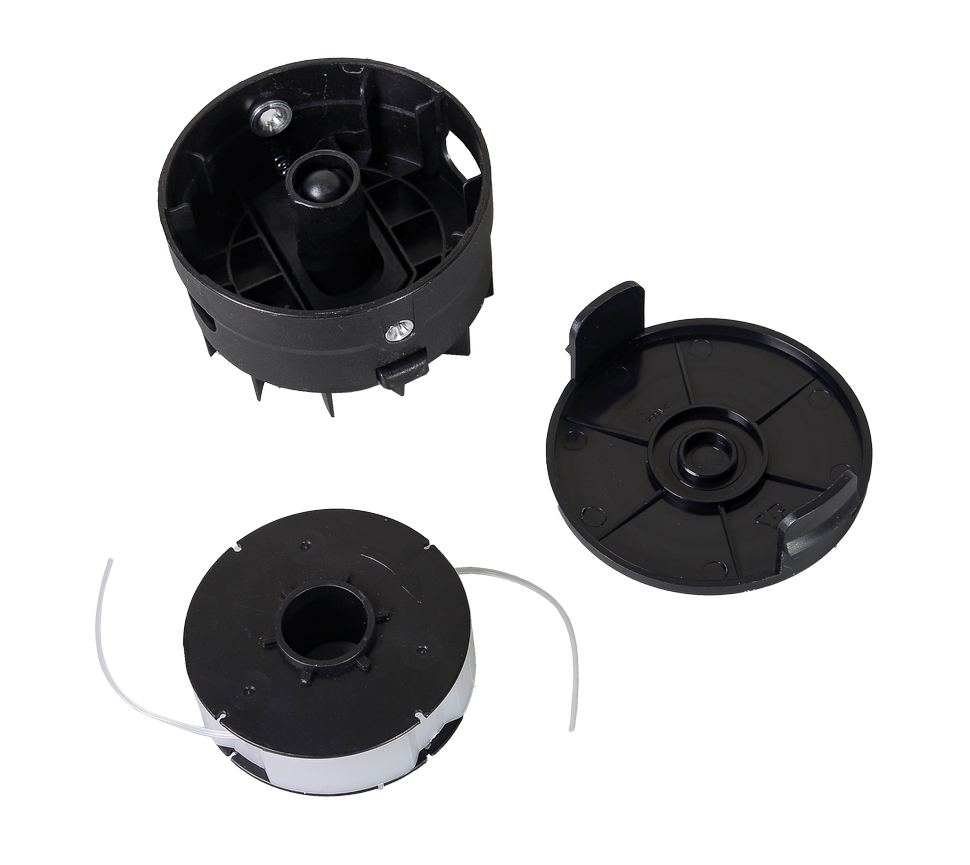 В комплекте с катушкой идет шпуля, которая позволяет легко и быстро заменять леску, а также предотвращает ее запутывание и перекручивание. Катушка изготовлена из ударопрочного пластика и имеет длительный срок службы. Выход концов лески из катушки на нужную длину происходит путем нажатия кнопки на катушке о землю.