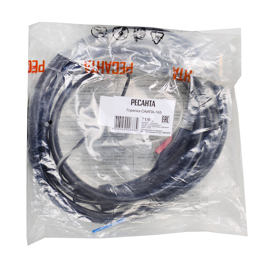 Горелка подходит для сварочного аппарата Ресанта САИПА-165. Через горелку подается защитный газ и проволока (0,6-0,8 мм) к месту формирования сварочного шва. Длина кабеля - 2 м, сварочный ток 160 А.