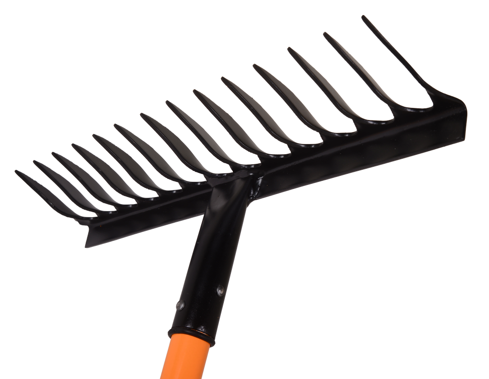 Витые зубья отлично удерживают сухой мусор, что увеличивает скорость работы. Прочная рабочая часть изготовлена из высококачественной стали.