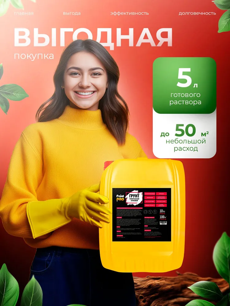 Готовая к применению грунтовка для внутренних и наружных работ.