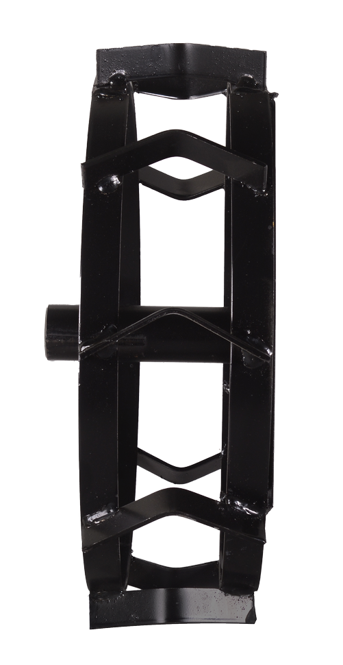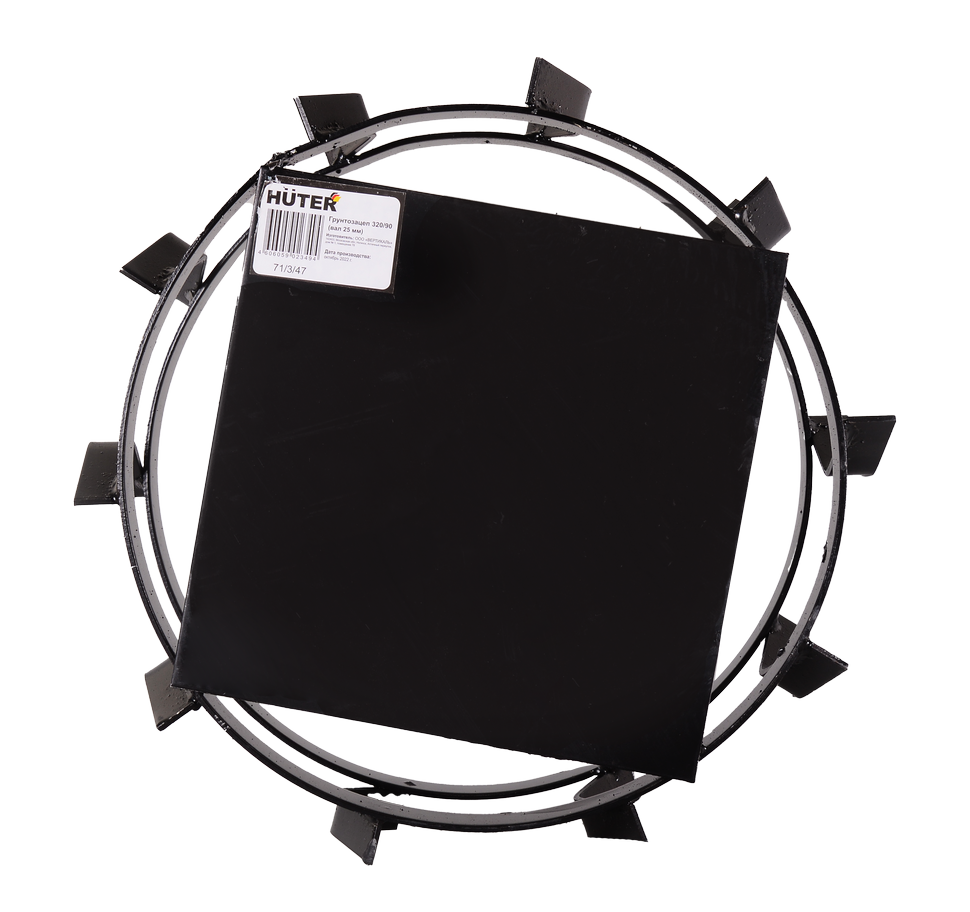 Грунтозацеп с кронштейном состоит из 2 металлических ободьев, сваренных между собой. Такая конструкция предотвращает налипание влажной земли, способствуя ее свободному прохождению в пустоты между лентами. На ободьях располагаются клинообразные протекторы, обеспечивающие удобство применения на рыхлых и глинистых почвах.