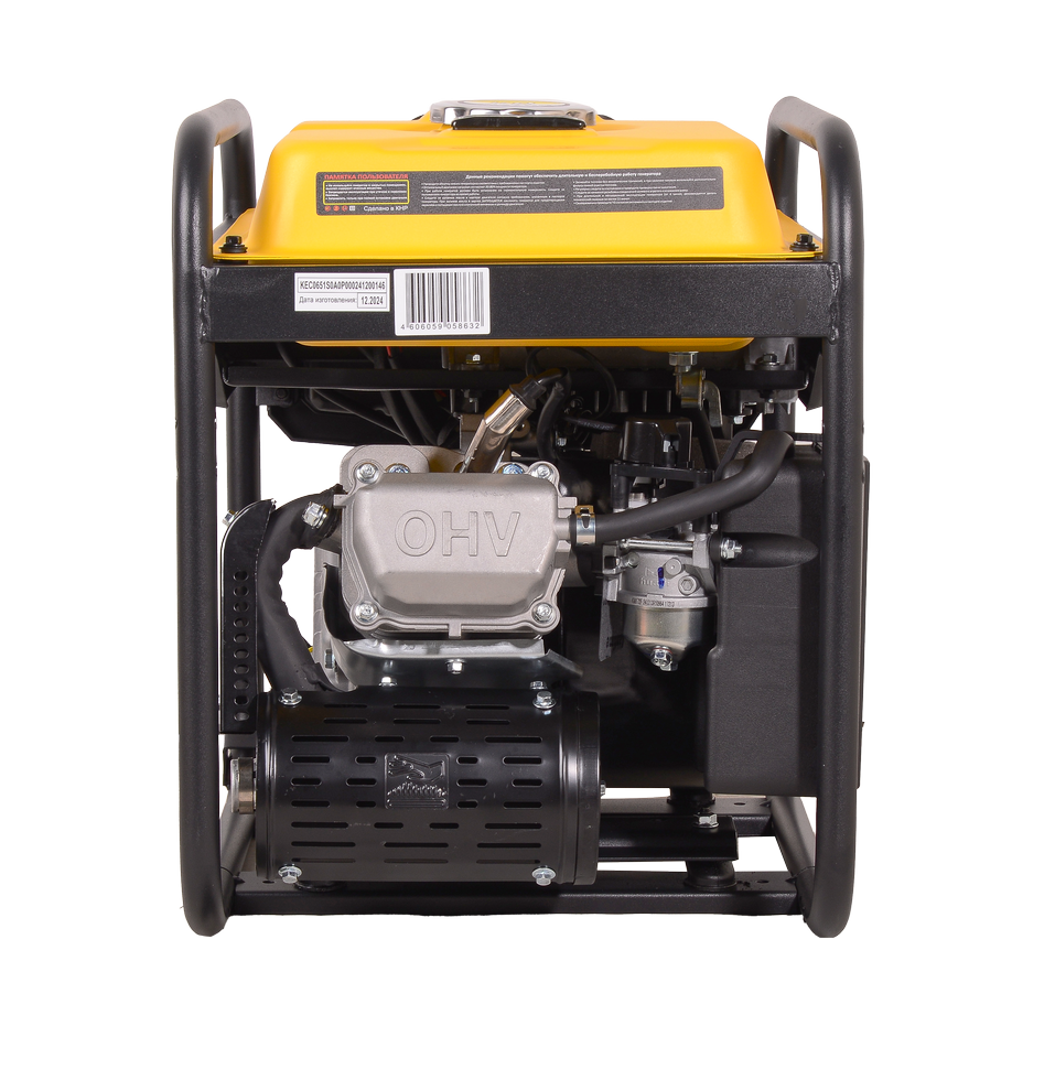 Компактные габариты устройства сочетаются с автономностью: 8-литровый топливный бак, работающий на бензине АИ-92, обеспечивает длительную работу без дозаправки. Долговечность двигателя обеспечивает система смазки объемом 600 мл. Запуск генератора осуществляется простым ручным стартером.