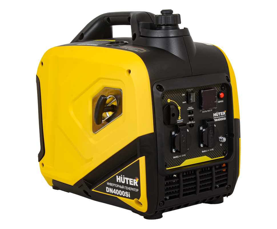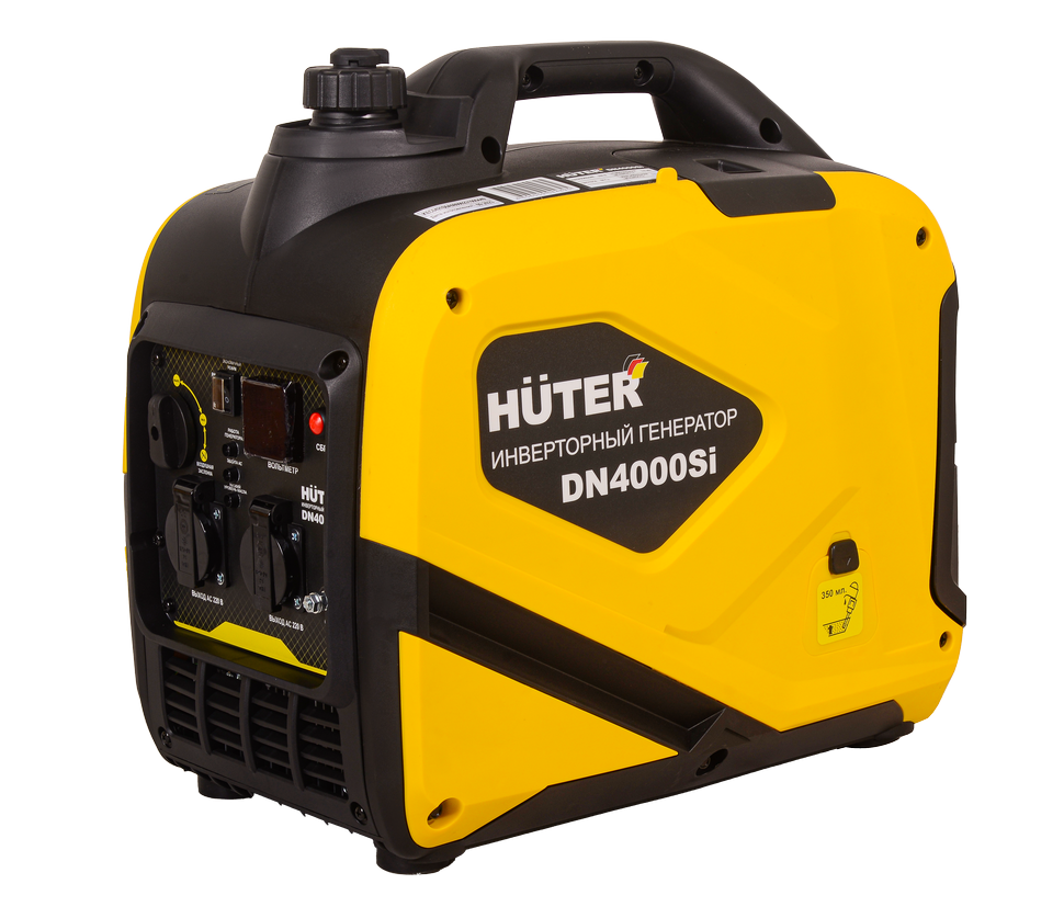 Модель однофазного инверторного генератора Huter DN4000Si из новой серии отличается компактными размерами. Генератор работает на бензине АИ-92 и служит для применения в качестве источника автономного электроснабжения в повторно-кратковременных режимах. Агрегат относится к категории инверторных. Он способен вырабатывать электрический ток со стабильными параметрами (чистый синус) независимо от входного напряжения, что делает его незаменимым источником электроэнергии для компьютеров и оргтехники. Мощность агрегата составляет 3 кВт (max – 3.3 кВт). Параметры вырабатываемого электричества 220В, 50Гц.