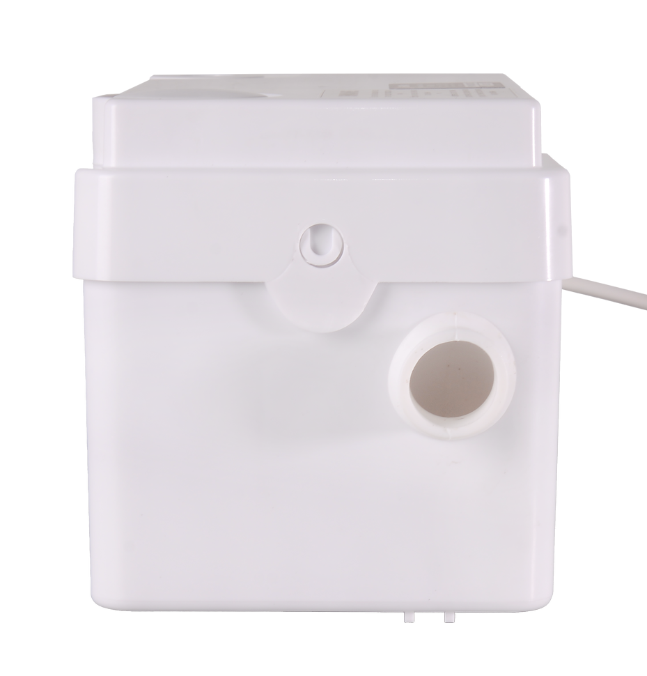 Корпус насоса выполнен из прочного пластика. Внутри расположен электрический двигатель, оснащенный термовыключателем, а также насос и реле. Как только сточные воды поступают в резервуар и достигают нужного объема, запускается двигатель, и вода перемещается посредством насоса в канализационную систему.