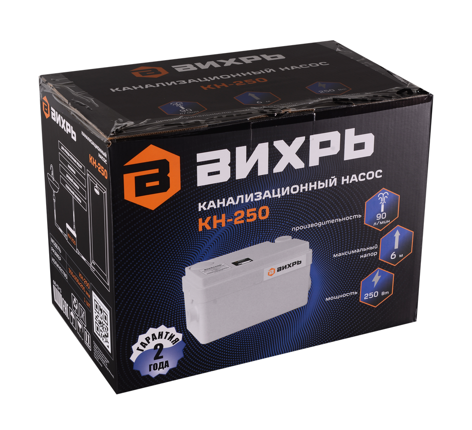 Канализационный насос Вихрь КН-250 поможет отвести сточные воды от душа, умывальника, кухонной раковины. Он пригодится в случае, если нельзя организовать естественный ток воды путем наклона труб.