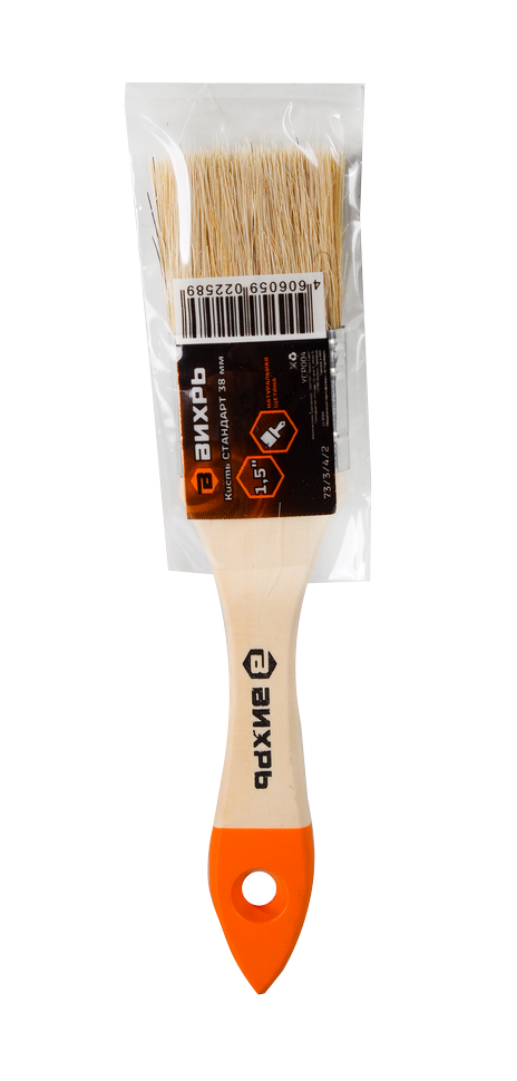 Кисть ВИХРЬ СТАНДАРТ 38 мм 1,5'' – это инструмент для малярных работ. Натуральная щетина обладает высокой впитывающей способностью и способна равномерно распределять краску по поверхности. Кроме того, она имеет отличную устойчивость к химическим воздействиям, что позволяет использовать ее с различными видами красок, лаков и грунтовок.