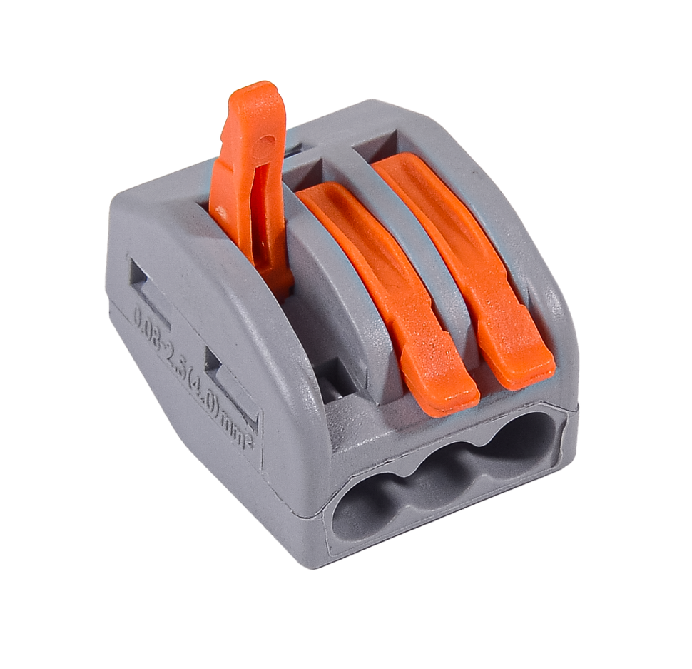 Клемма соединительная предназначена для соединения и ответвления проводников сечением 0.08-4 мм2. Корпус выполнен из пластика, стойкого к воздействию пламени и ультрафиолета. Механизм клемм гарантирует прочную фиксацию даже при механическом воздействии на проводники. Контактные пластины из луженой меди надежно защищают клемму от окисления.
