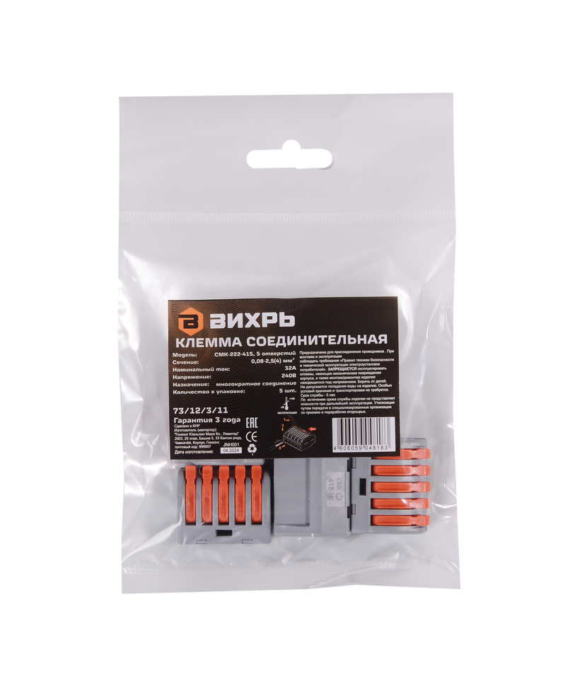 Клемма соединительная предназначена для соединения и ответвления проводников сечением 0.08-4 мм2. Корпус выполнен из пластика, стойкого к воздействию пламени и ультрафиолета. Механизм клемм гарантирует прочную фиксацию даже при механическом воздействии на проводники. Контактные пластины из луженой меди надежно защищают клемму от окисления.