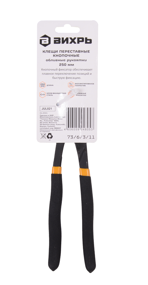 Выполнены из качественной хромованадиевой стали. Механизм фиксации с кнопкой позволяет быстро регулировать раскрытие рабочих губок и ускоряет время позиционирования клещей на крепеже. Обливные рукоятки обладают высокой устойчивостью к маслам и топливу.
