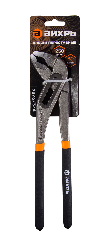 Клещи переставные Вихрь 250 мм обеспечивают надежный захват и фиксацию различный предметов. Могут использоваться для монтажа и демонтажа крепежных элементов, обработки труб и других работ. Они заменят разводной или трубный ключи.