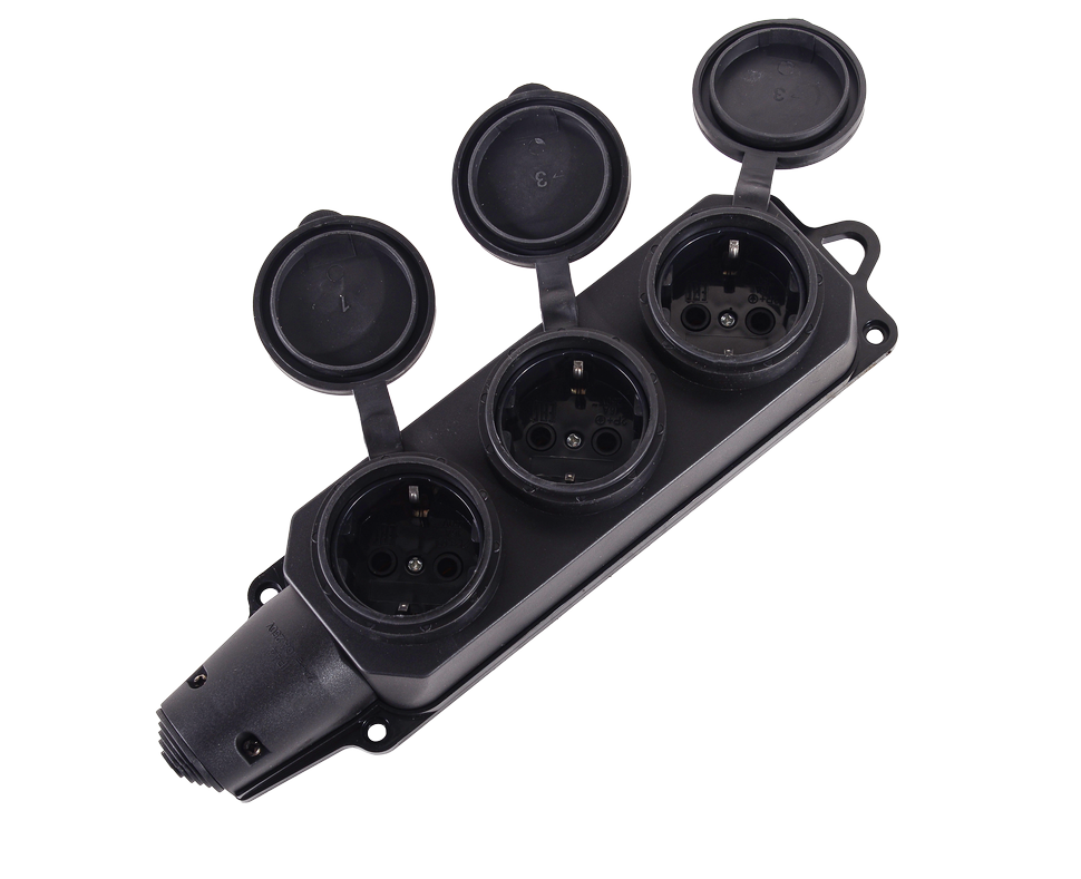 Колодка трехместная с заглушками - это надежное и функциональное решение для подключения электрооборудования и электроинструмента в сложных эксплуатационных условиях. Оснащена заземлением и имеет три гнезда. Это позволяет одновременно подключать несколько устройств.