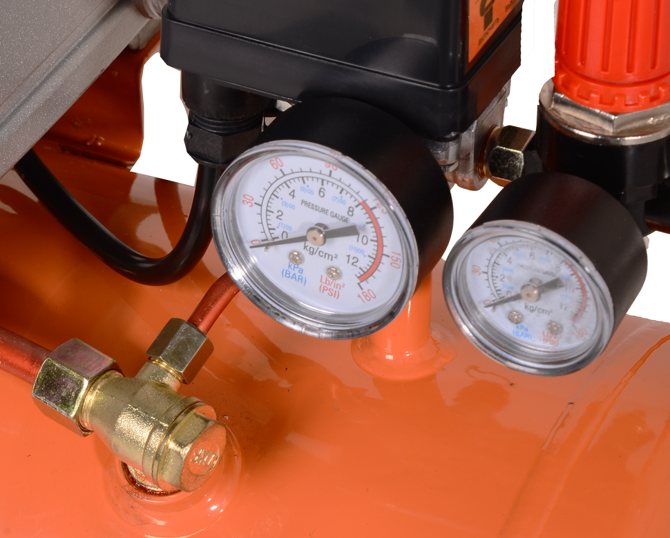Номинальная мощность составляет 2000 Вт, что позволяет обеспечить оптимальную работу. Накопление сжатого воздуха осуществляется за счет ресивера с объемом 24 л. Встроенный прессостат обеспечивает компрессию в автоматическом режиме для достижения производительности 260 л/мин. Контроль давления производится манометром. Модель имеет поршневый компрессор. Относится к одноцилиндровым устройствам.